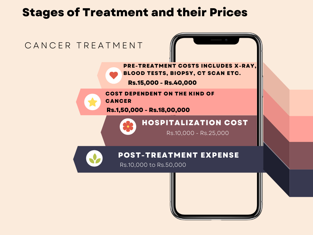 To summarize the overall cost of cancer treatments in India and to make it easy to calculate, Practocare study, sum up the total cost into three parts: