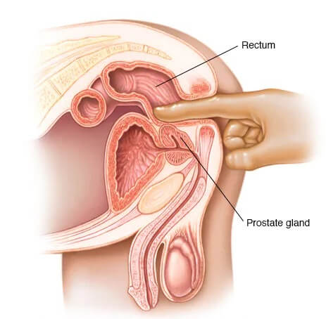 Digital rectal exam: The doctor inserts a finger into your rectum to check whether your prostate has enlarged.