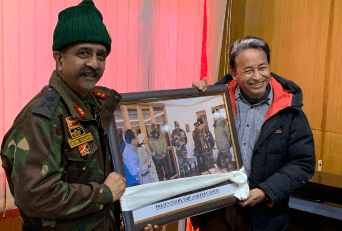 Sonam Wangchuk with COS Gen Kaushik. The two discussed solar heated shelters for the Indian Army and also exchanged memoirs of late CDS Gen Bipin Rawat.