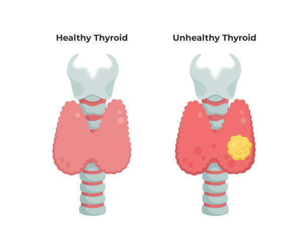 Thyroid cancer develops when there is an abnormal growth of thyroid cells in the body. The thyroid is a gland situated at the neck’s base just below Adam’s apple and has the shape of a butterfly with a left and right lobe. There is a thin tissue called the isthmus that connects the two lobes. The thyroid produces several hormones using a mineral found in some food called iodine.