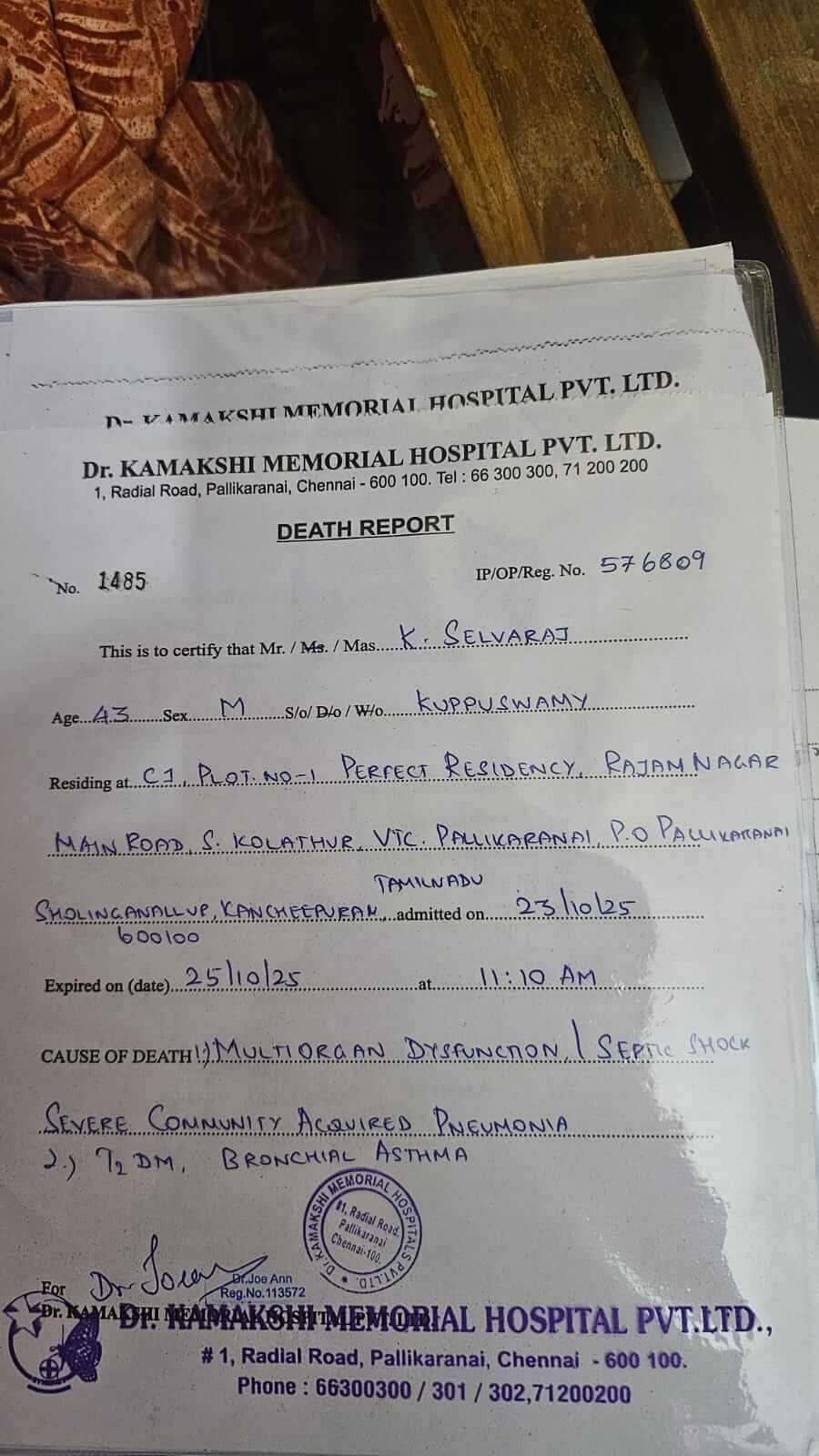 It all started with mild wheezing, which he initially brushed off as minor. However, last Sunday, his condition worsened with fever, cough, and heavy phlegm. His oxygen levels dropped dangerously to 90, prompting a visit to the clinic, where doctors warned of hospitalization if he deteriorated further. By nightfall, Selvaraj’s condition took a severe turn. His brother rushed him to the emergency room, where a CT scan revealed severe pneumonia in both lungs.