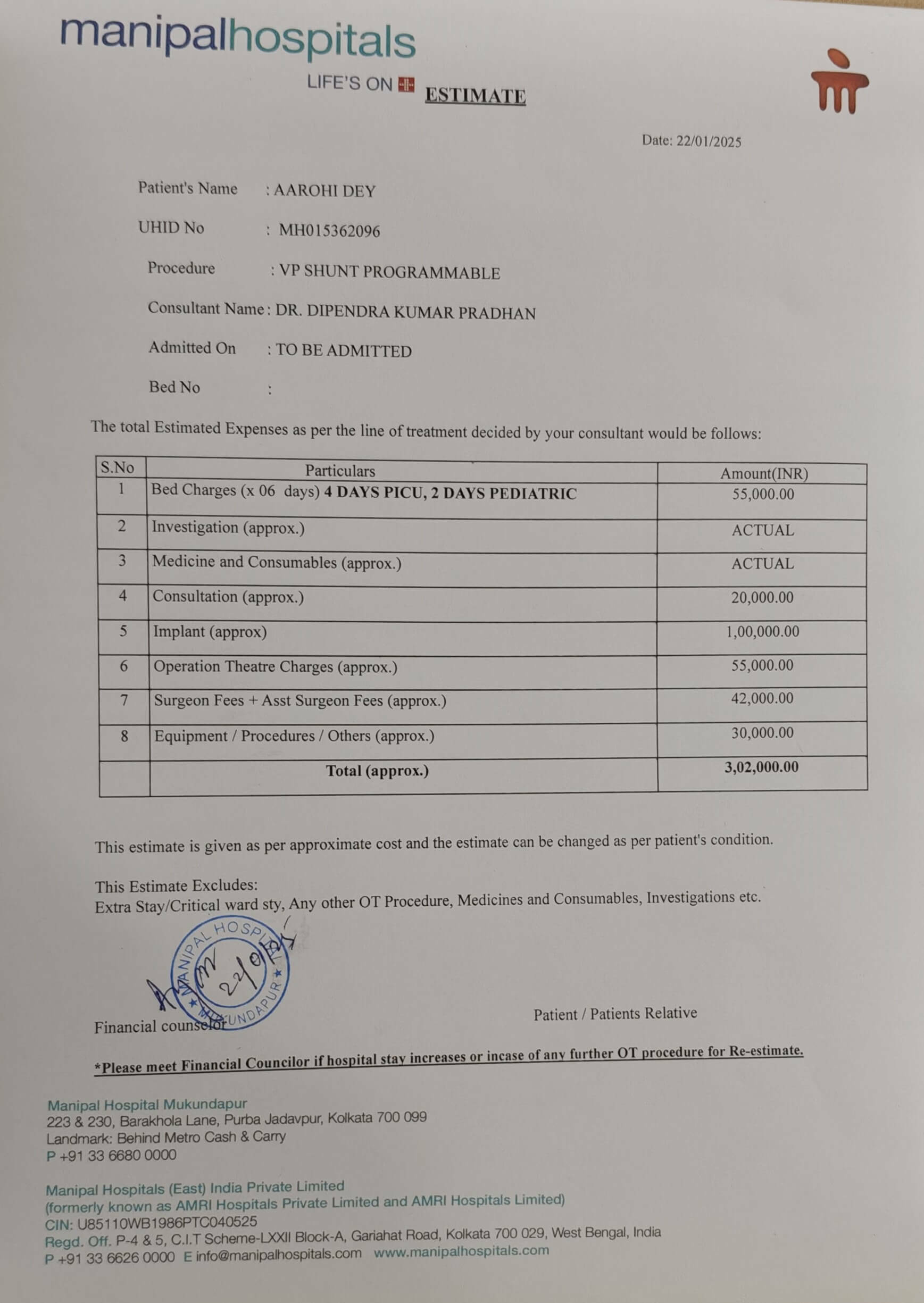 Aarohi Dey is currently hospitalized at Manipal Hospital and is scheduled to undergo surgery tomorrow.