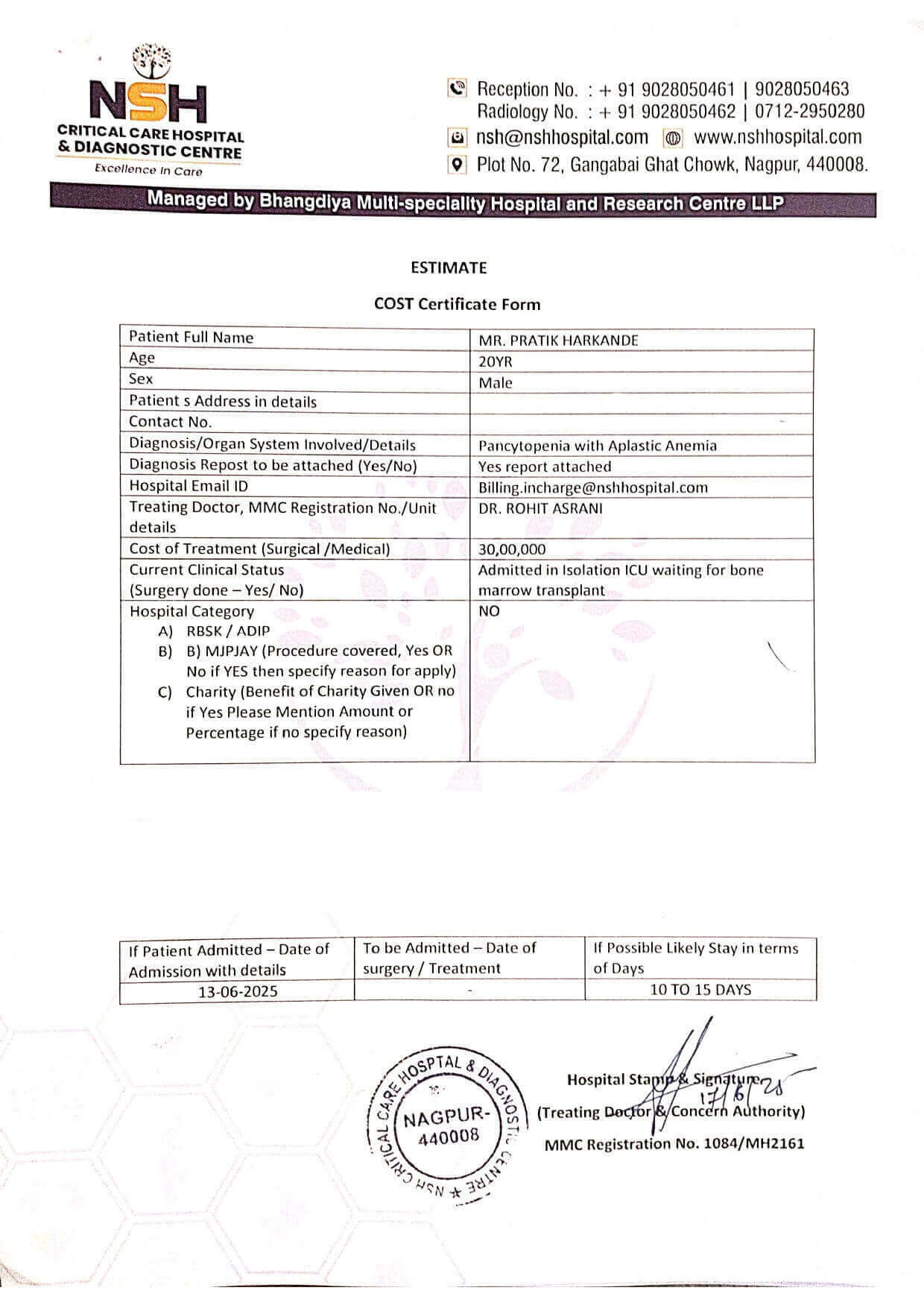 20-year-old Pratik Haraknde was diagnosed with Aplastic Anemia and is currently in the ICU, awaiting a Bone Marrow Transplant. A bright student with dreams of pursuing B.Tech., his treatment has put his future on hold. His daily wage labourer father and elder brother are struggling to support his care.