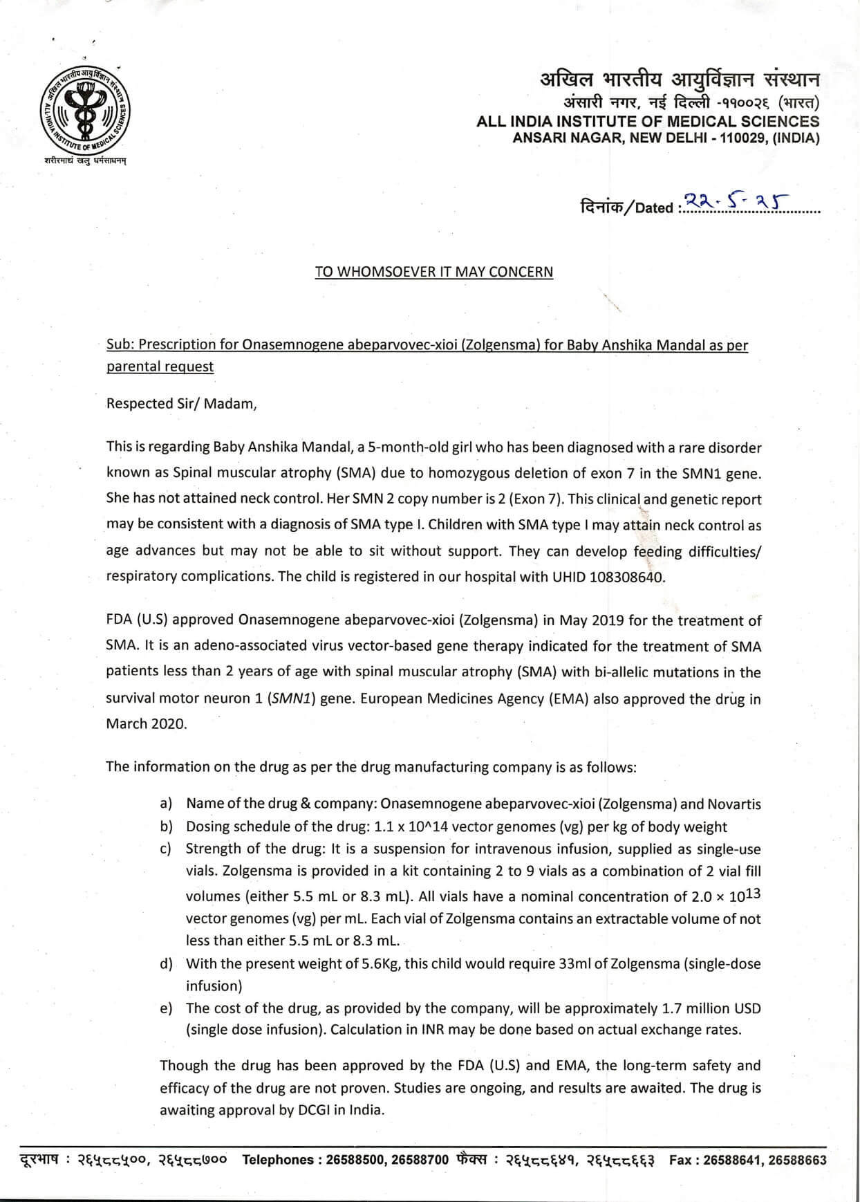 There is one hope. A one-time gene therapy called Zolgensma can stop the disease from getting worse. But the cost is staggering, ₹14 crore (around USD 1.7 million). In India, under the Zolgensma Early Access Request Program, some registered hospitals provide the therapy at a subsidised cost of around USD 1 million (₹9 crore). Even then, it is far beyond what we, as a middle-class family, are struggling to arrange.