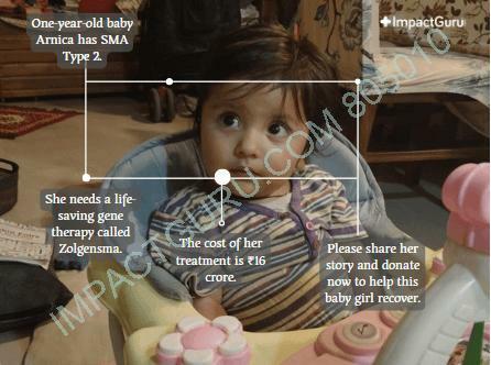 The U.S. Food and Drug Administration (FDA) has approved a life-saving drug called Zolgensma. It’s a virus-based gene therapy that delivers a healthy copy of the SMN1 gene, enabling the body to produce the missing SMN protein Arnica desperately needs. As per the medical reports, Arnica needs Zolgensma before she turns 2.