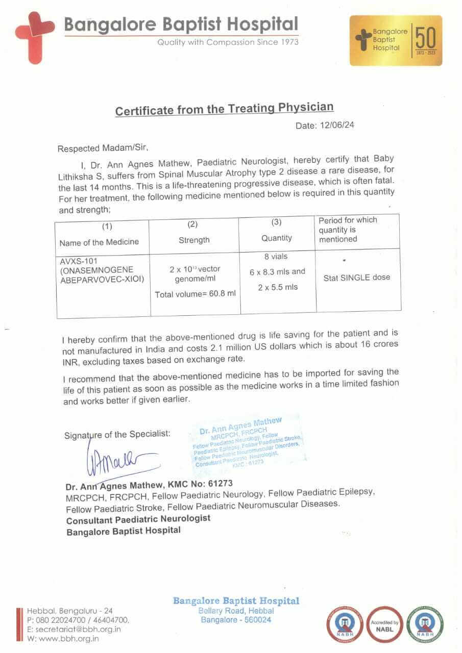 In contrast, Lithiksha struggles even to scratch the surface of these milestones. Concerned, we headed straight to Baptist Hospital in Bengaluru, where we learned that Lithiksha was diagnosed with a genetic neuromuscular disorder known as Spinal Muscular Atrophy (SMA).
