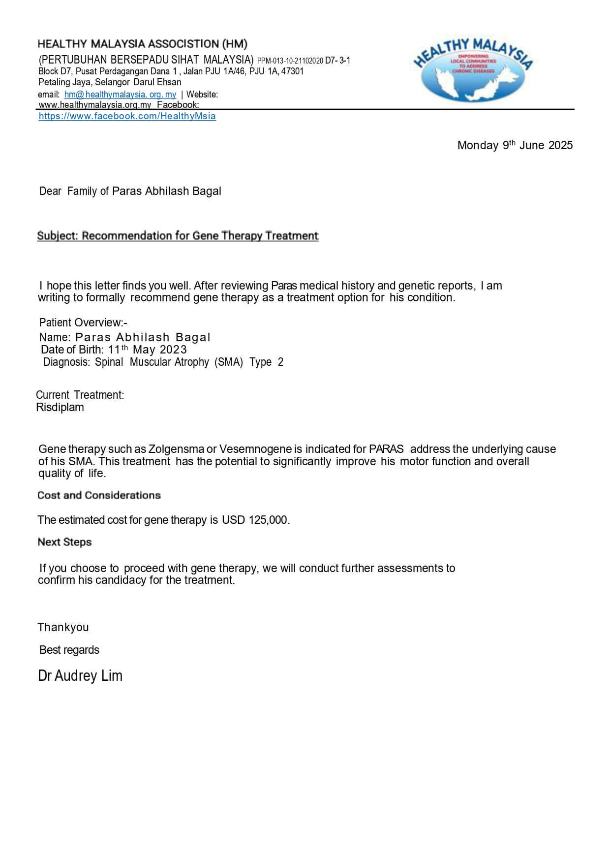 “Time is running out for my little son Paras. Doctors have urged us to administer Gene Therapy within the next three months to give him the best chance at life. Your support could be the miracle that saves Paras and gives him the life he deserves.” - Saylee Bagal
