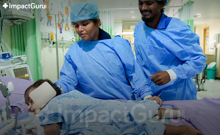 Shanvith’s father is a daily wage labourer who earns ₹500 per day, while his mother is a homemaker. They have a 4-year-old daughter who keeps asking to see her little brother, not understanding why he is in the hospital.