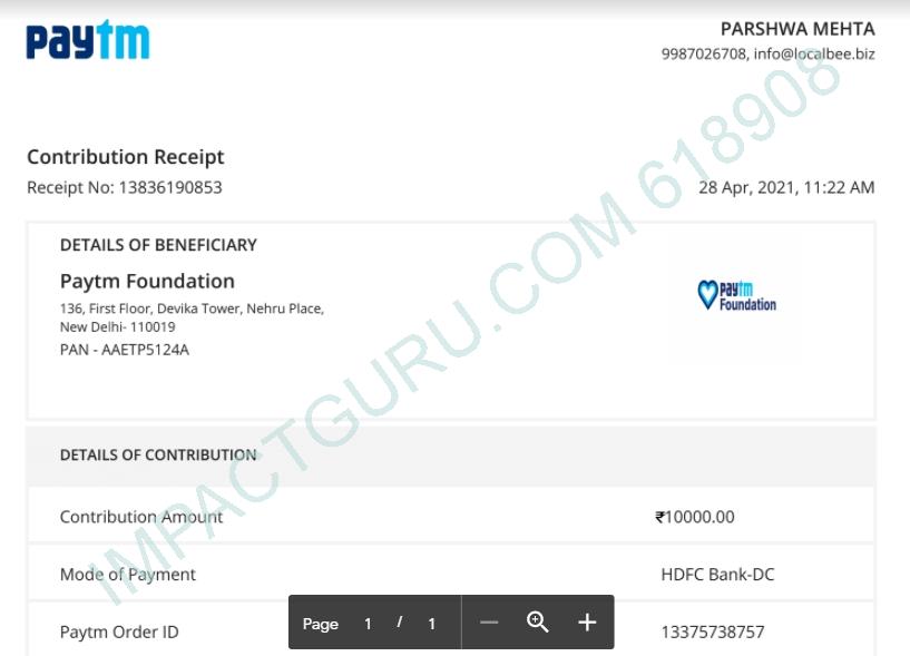 3. Rs 10000 to the paytm foundation for oxygen concentrators.