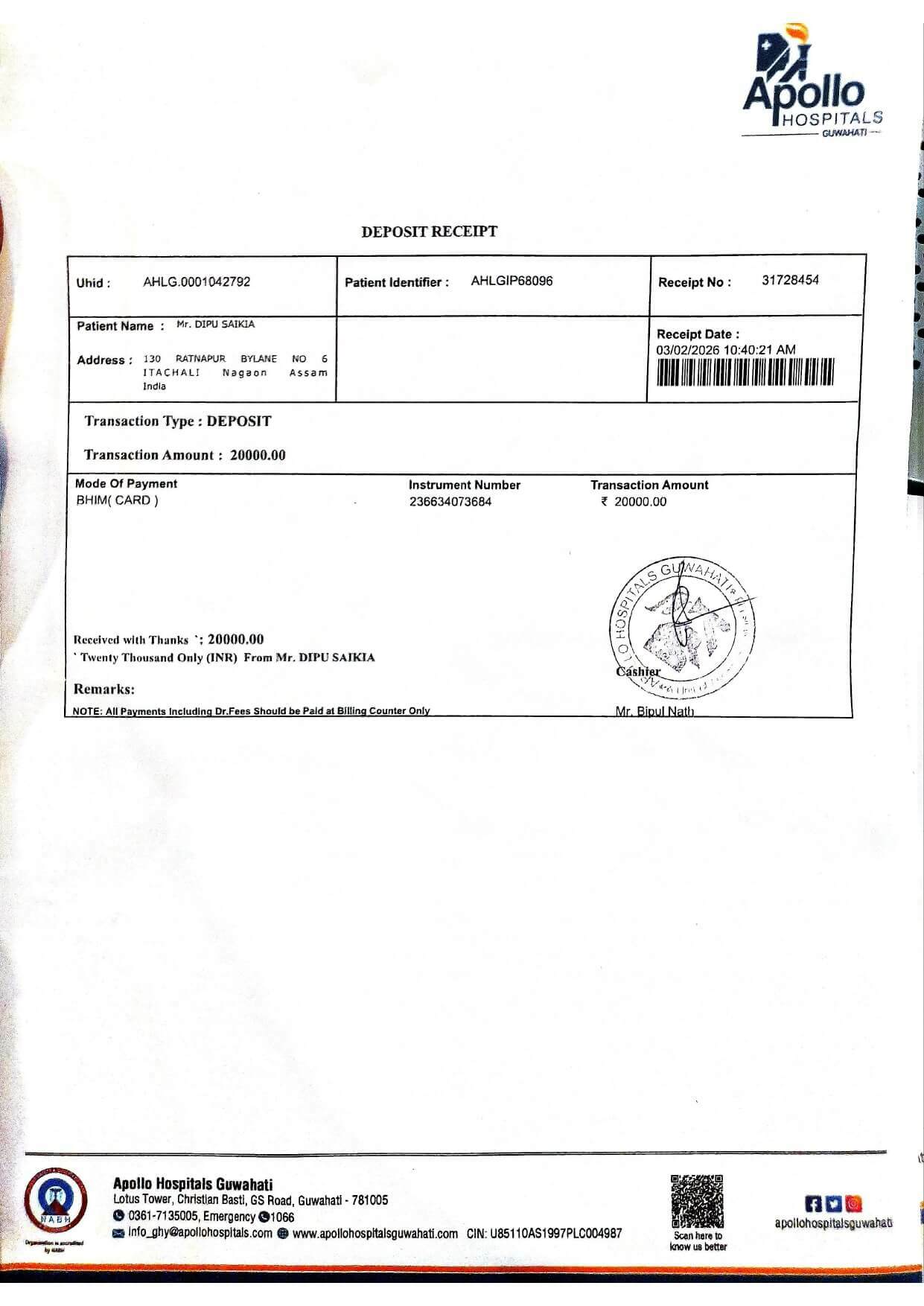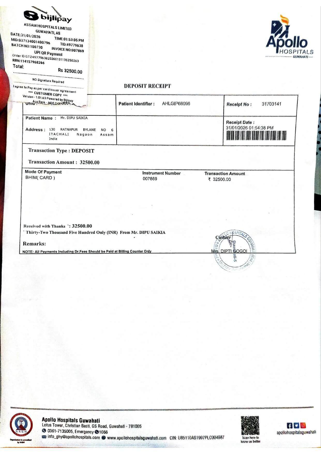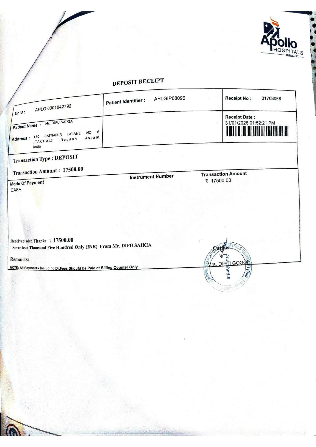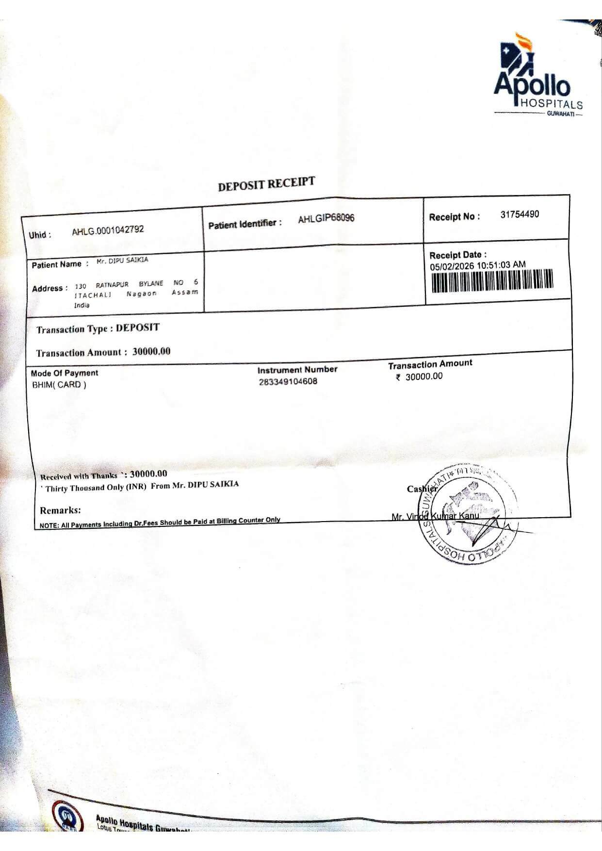 I am raising funds for my father Mr Dipu Saikia, who is currently admitted in a hospital and undergoing treatment for a critical heart condition along with a severe lung infection.