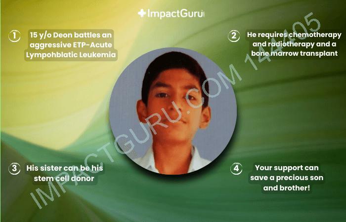 Deon has undergone intense chemotherapy along with multiple medications. He is now scheduled to undergo radiotherapy along with chemotherapy this week.