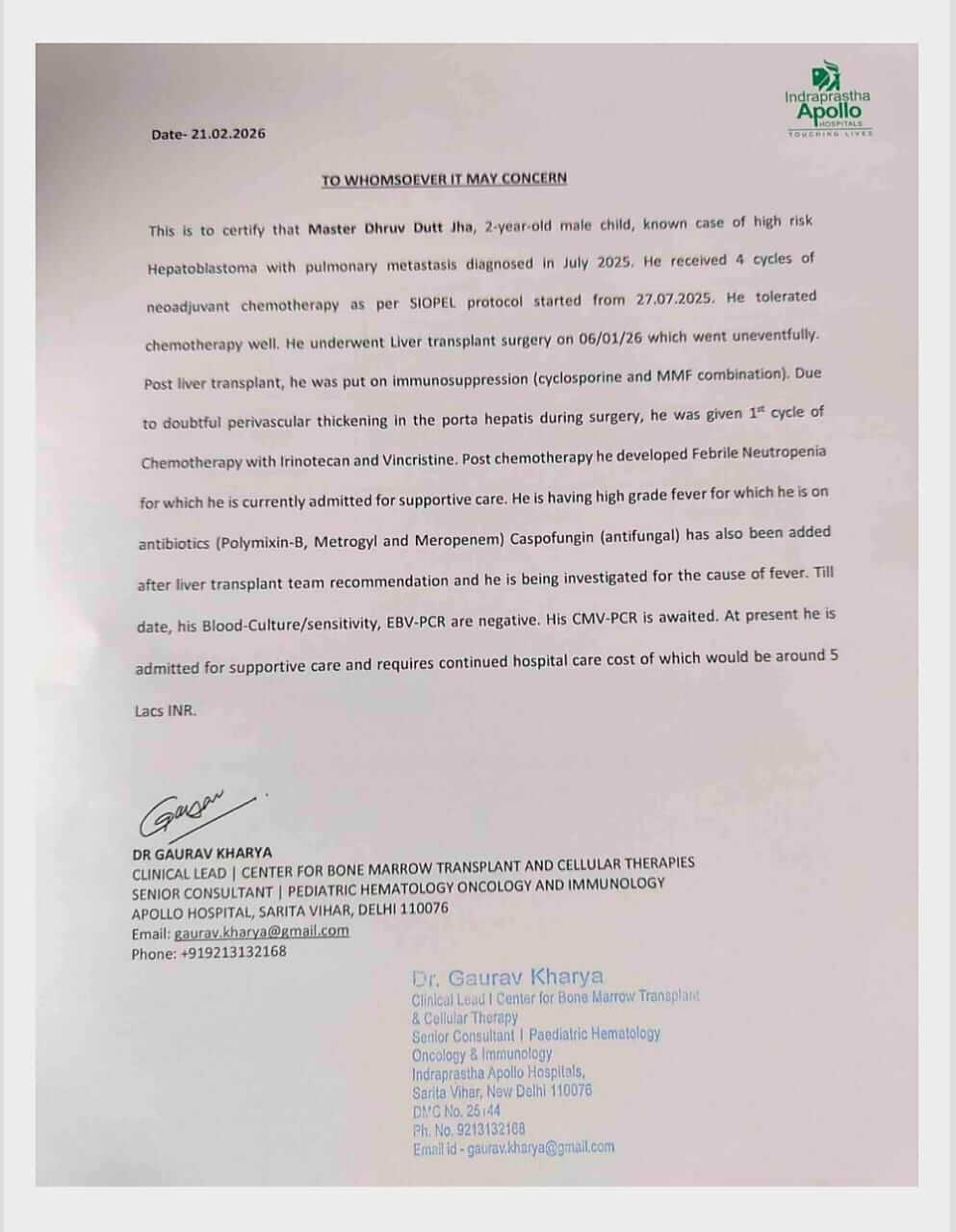 Little Dhruv has already undergone 10 rounds of chemotherapy, but the Doctors at Indraprastha Apollo Hospitals, New Delhi, didn’t get the desired results. Furthermore, as part of the treatment, Dhruv will undergo several medical tests, including a PET scan. According to the doctors, after many rounds of chemotherapy, a liver transplant only seems to be the best option for Dhruv. But the transplant procedure will have to be done as soon as possible.