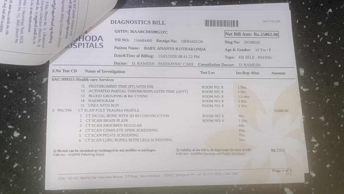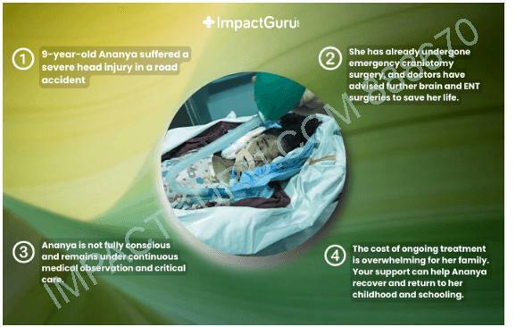 My daughter Ananya is 9. She should be worrying about schoolwork and what she wants to be when she grows up, not lying in a hospital bed. After the road accident, she was brought to Yashoda Hospitals, Secunderabad, and since then, our days have blended into each other.