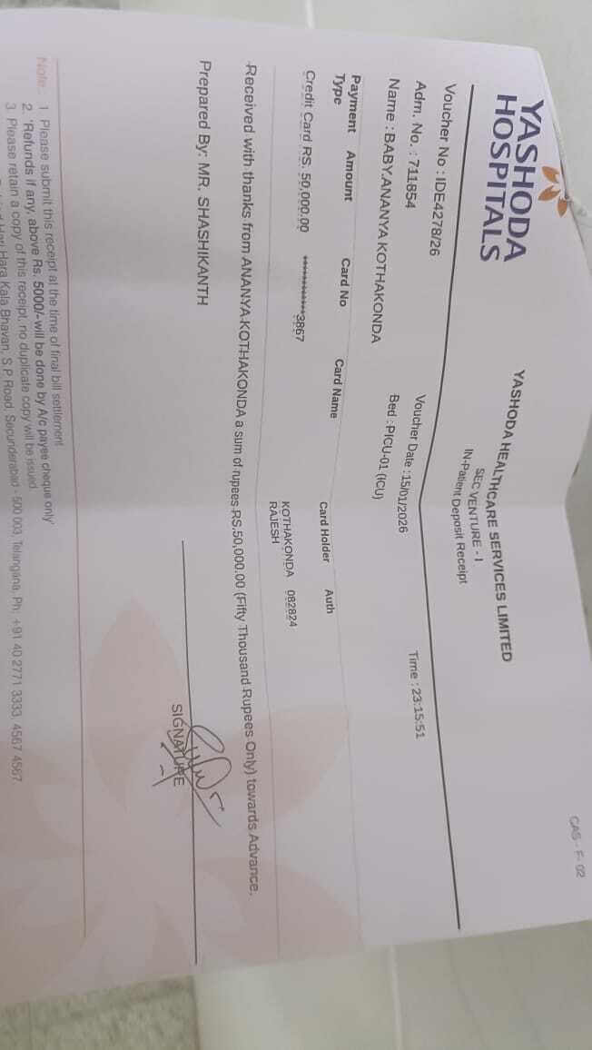 The cost of her treatment has been estimated at ₹15 lakh, and despite exhausting all our savings and resources, we are struggling to arrange the remaining amount.