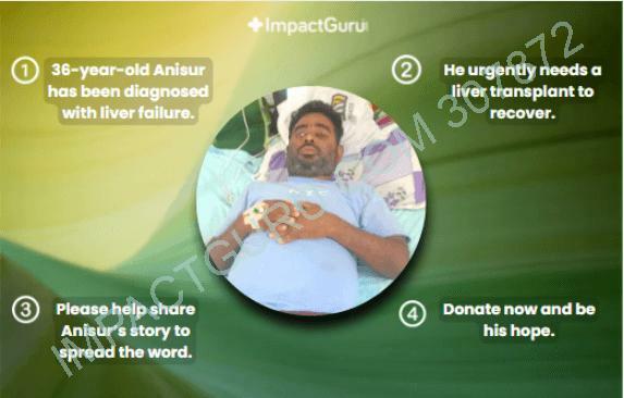 Anisur is a 35-year-old businessman whose life took a devastating turn when he was diagnosed with liver failure in November 2025. Until then, he was the sole earning member of his family, working tirelessly to provide a stable life for his parents, his wife, and their 3-year-old daughter.