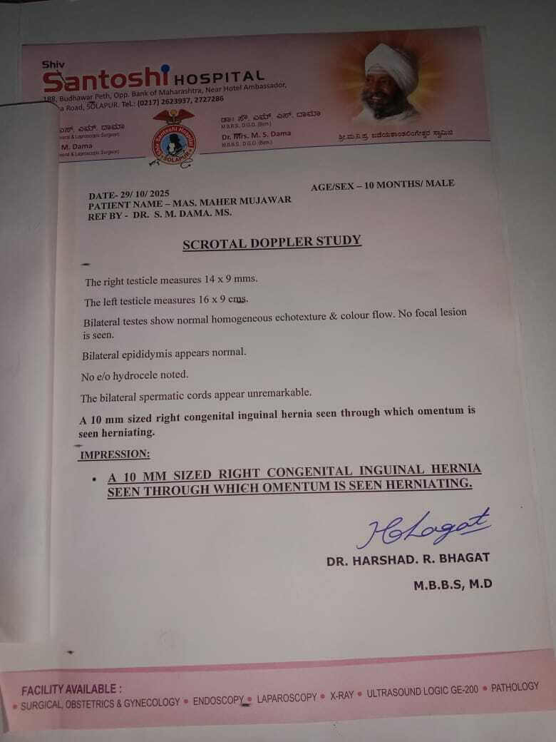 My name is Mehboob Mujawar, and I am reaching out to ask for your kind support to help my little son, Maher Mahebub Mujawar. He has been diagnosed with a hernia, a painful condition where an internal organ or tissue pushes through a weak spot in the muscles. It has caused him a lot of discomfort, and as parents, it’s heartbreaking to see our child suffer.