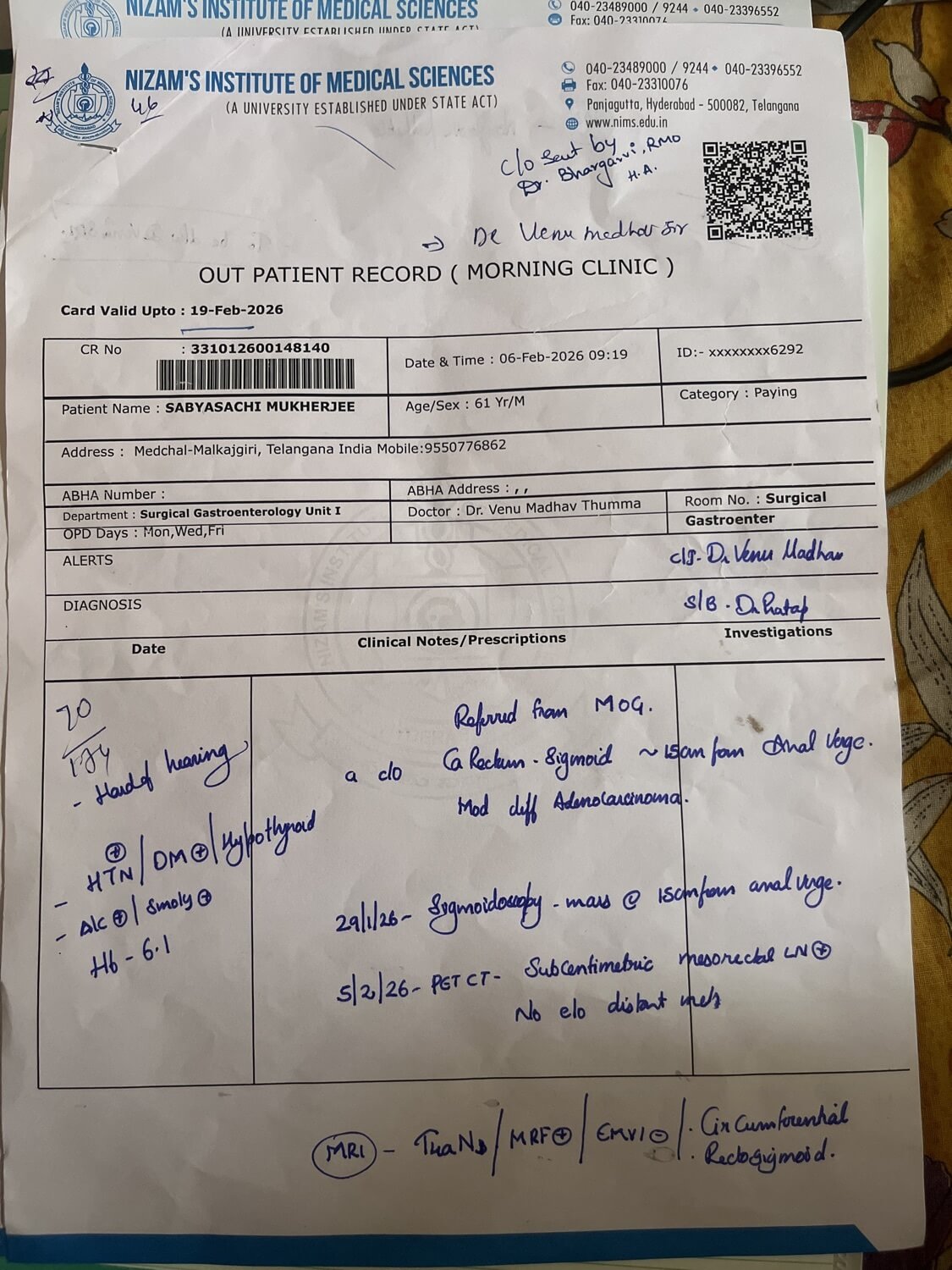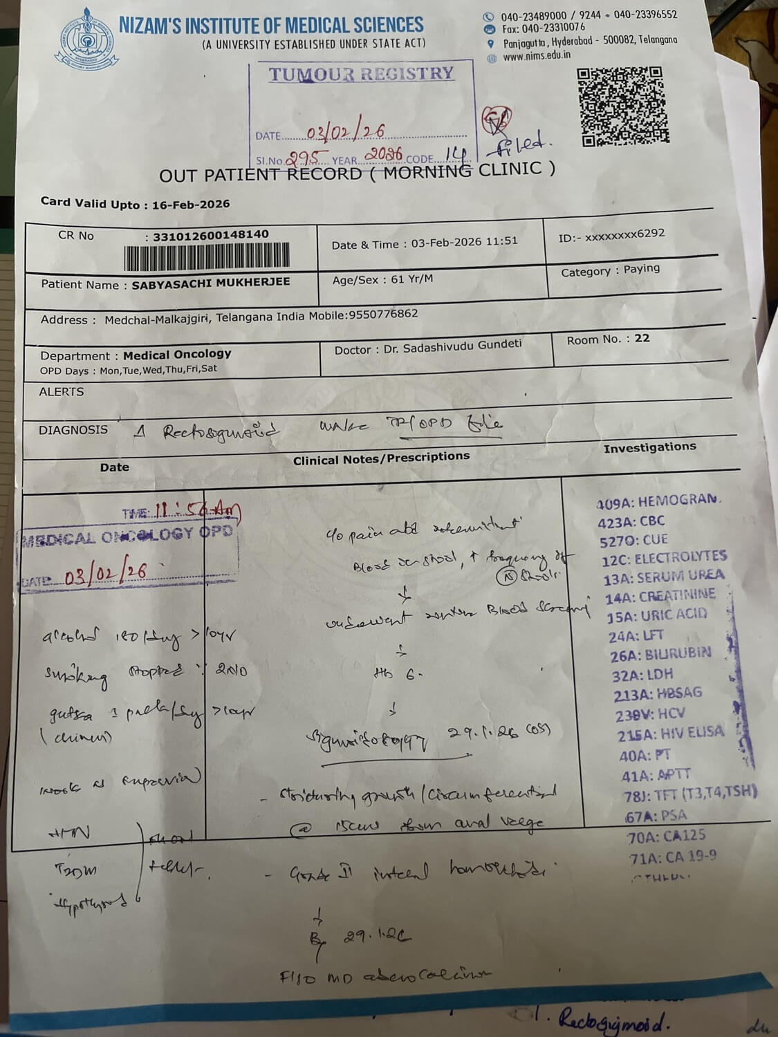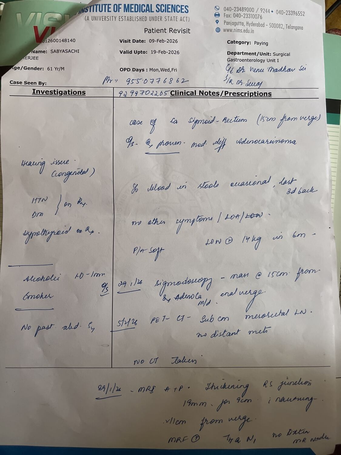 62 ఏళ్ల సబ్యసాచికి స్టేజ్ 3 కోలన్ క్యాన్సర్ ఉన్నట్లు నిర్ధారణ అయింది