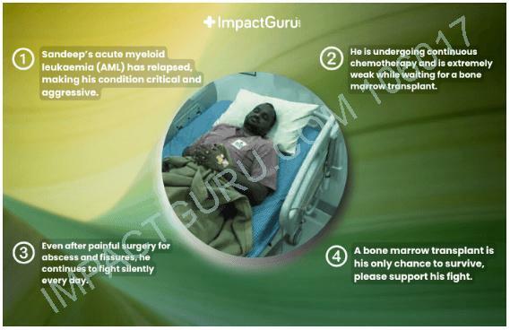 देणगी द्या: माझे पती, संदीप एस, यांच्या बोन मॅरो ट्रान्सप्लांटसाठी योगदान देण्यासाठी 'आता देणगी द्या' बटणावर क्लिक करा.