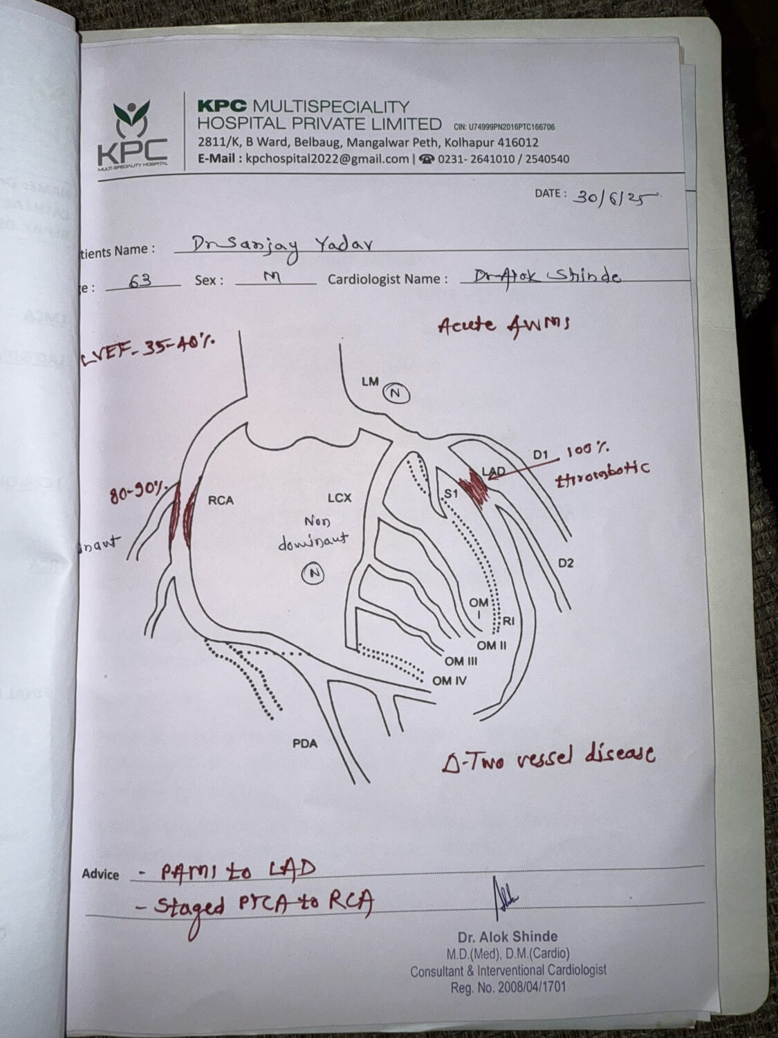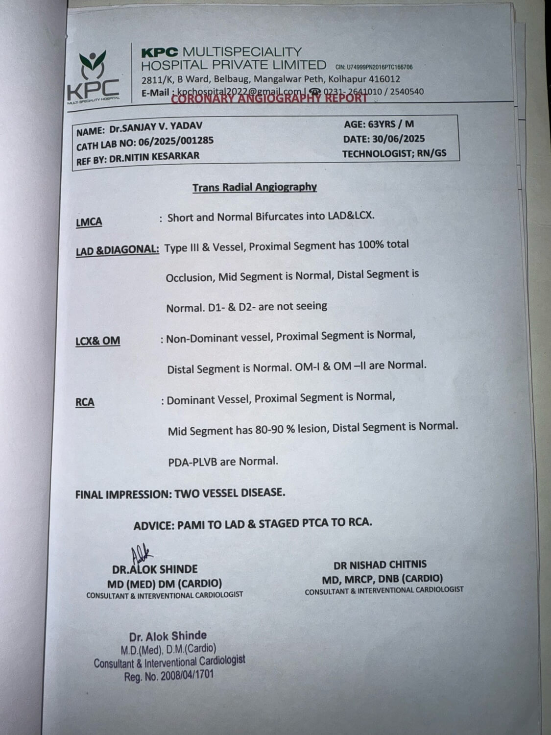 On the morning of 30th June, my father suddenly experienced severe chest pain. We rushed him to the hospital, only to be told that he had suffered a major heart attack. Ironically, my father is a doctor himself — a General Physician (BMS) who has spent decades selflessly treating people, often for free, especially those who couldn’t afford care. But now, he needed immediate help himself.