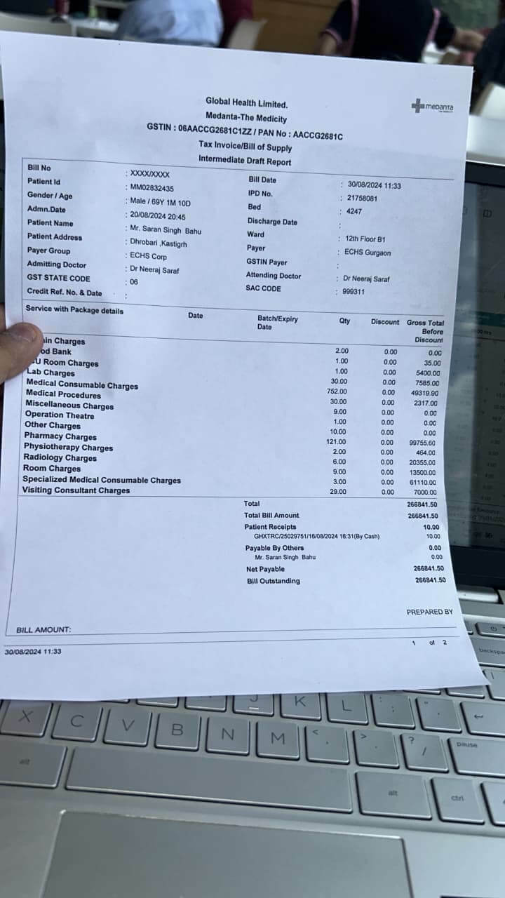 डॉक्टरों ने तुरंत सर्जरी की सलाह दी है, और इलाज का बाकी खर्च ₹15,00,000 है, जिसे हम वहन नहीं कर सकते। देखभाल करने के कारण बेरोज़गार होने की वजह से, मैं अकेले यह रकम जुटाने में असमर्थ हूँ।