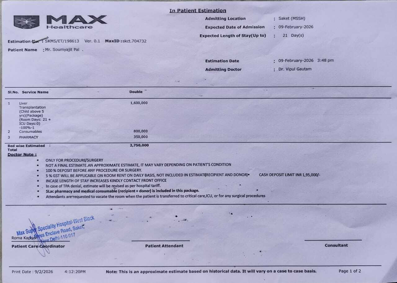 আজ, আমার ছেলে ম্যাক্স সুপার স্পেশালিটি হাসপাতালে চিকিৎসাধীন, যেখানে ডাক্তাররা জরুরি লিভার ট্রান্সপ্ল্যান্টের পরামর্শ দিয়েছেন। এই অস্ত্রোপচার কেবল একটি চিকিৎসা নয় - এটি তার বেঁচে থাকার এবং আবার সুস্থ জীবনযাপনের একমাত্র সুযোগ।