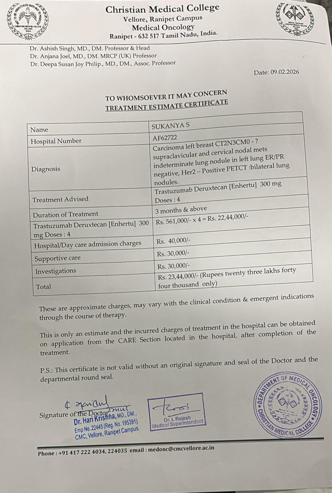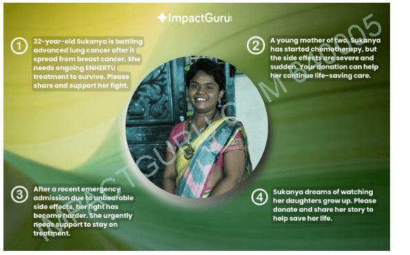 నా పేరు ప్రవీణ్ కుమార్. నా భార్య సుకన్య వయసు కేవలం 32 సంవత్సరాలు, గృహిణి, మా ఇద్దరు చిన్నారులకు ప్రేమగల తల్లి మరియు మా ఇంటి గుండె. రెండు సంవత్సరాల క్రితం, ఫిబ్రవరి 2024లో ఆమెకు రొమ్ము క్యాన్సర్ ఉన్నట్లు నిర్ధారణ అయినప్పుడు మా జీవితాలు మారిపోయాయి. మేము ఆశను నిలబెట్టుకున్నాము, చికిత్సను విశ్వసించాము మరియు మా కుమార్తెల కోసం బలంగా ఉండటానికి ప్రయత్నించాము.