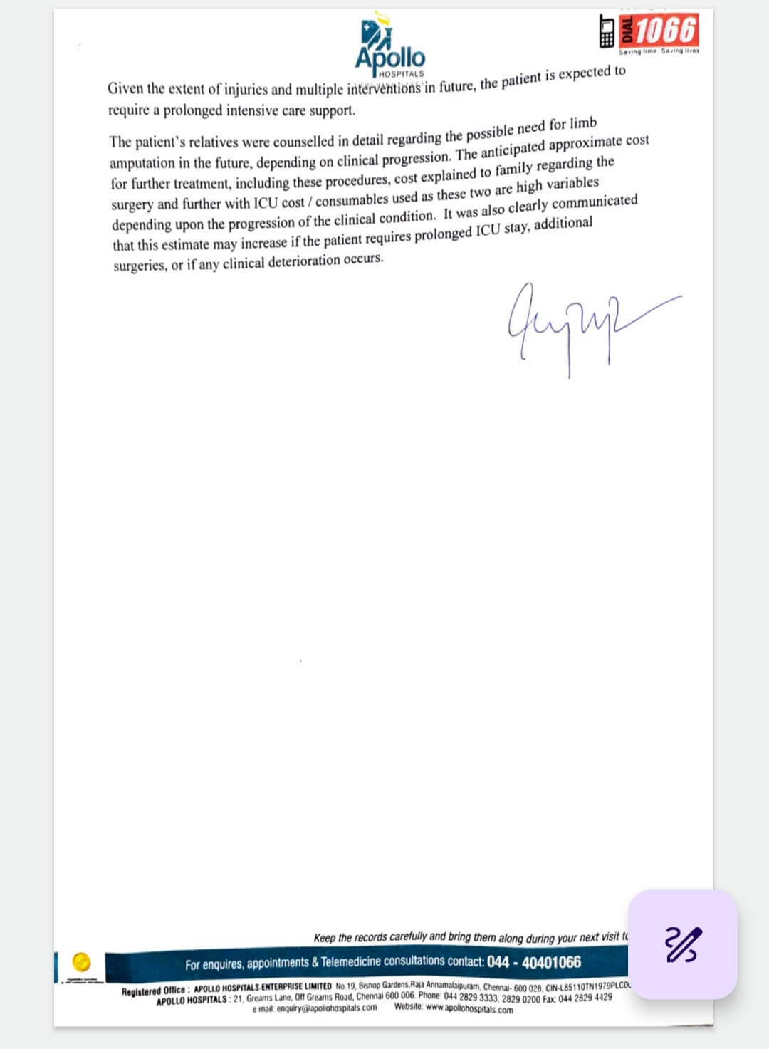 I am making a heartfelt appeal to you in our hour of greatest need. Every single contribution, no matter how small, is a direct contribution to my father's surgeries and his chance at a normal life. Even a donation of one rupee is a symbol of hope for a daughter who just wants her hero back home. Please, stand with us and help my father overcome this trauma. We are eternally grateful for your support, your prayers, and your generosity.