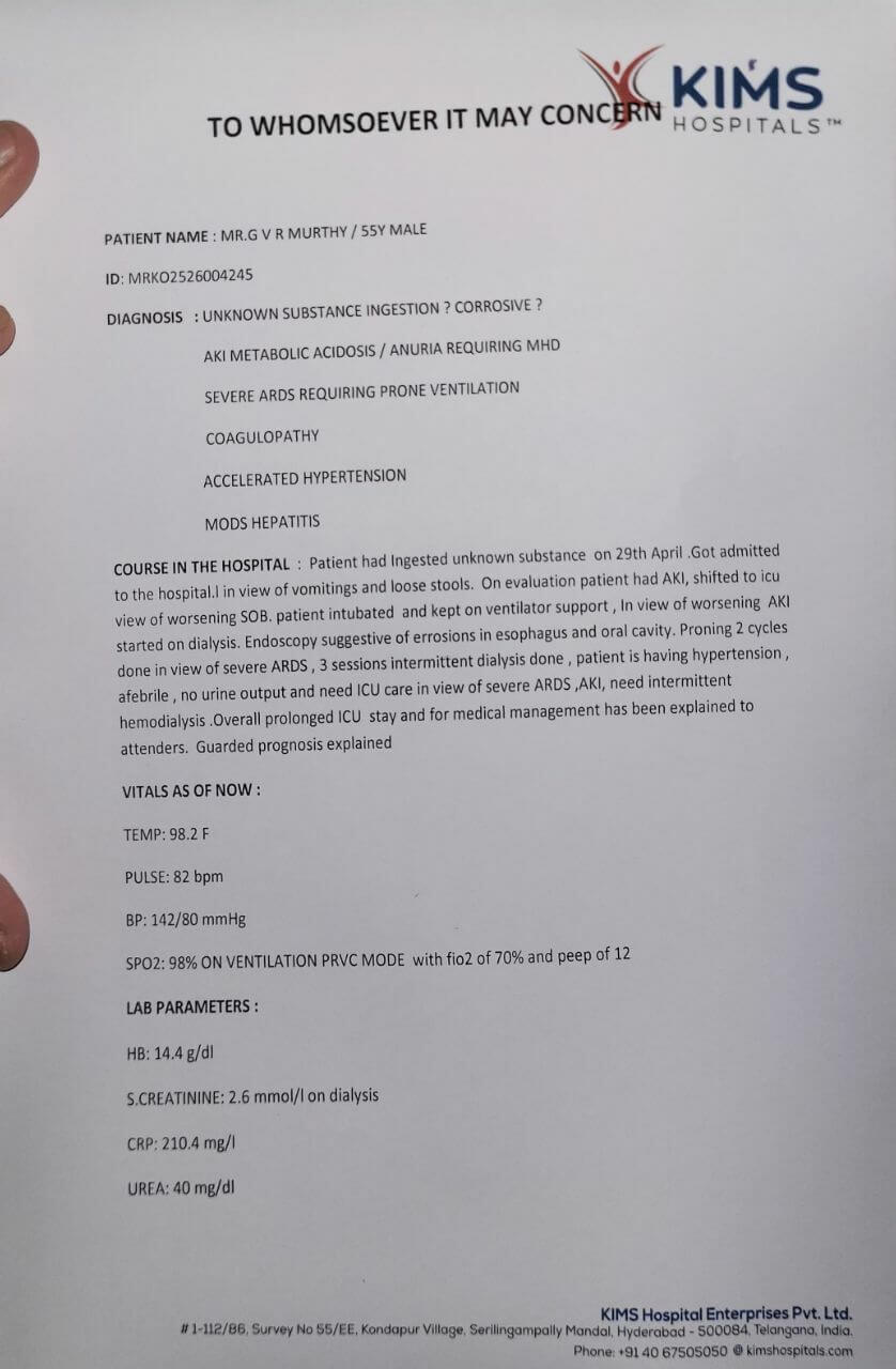 He is receiving treatment at KIMS Hospitals, Kondapur, Hyderabad, and every moment is critical. Watching someone you love go through this much pain and suffering is truly heartbreaking. My brother has always been a kind, loving, and responsible person, and it is extremely painful to see him in such a helpless condition.