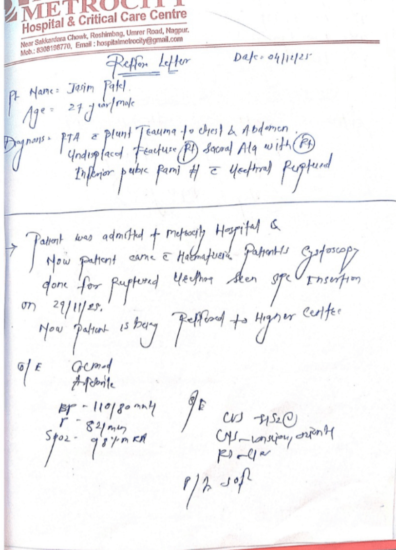 My name is Shahbaz Khan, and I am reaching out with deep concern and hope to seek your support for my close friend, Jasim Husain Patel, who is currently fighting for recovery after a severe and unexpected accident. On 7th December 2025, Jasim met with a serious accident that resulted in a traumatic abdominal injury. What should have been a normal day turned into a life-altering crisis for him and his family.