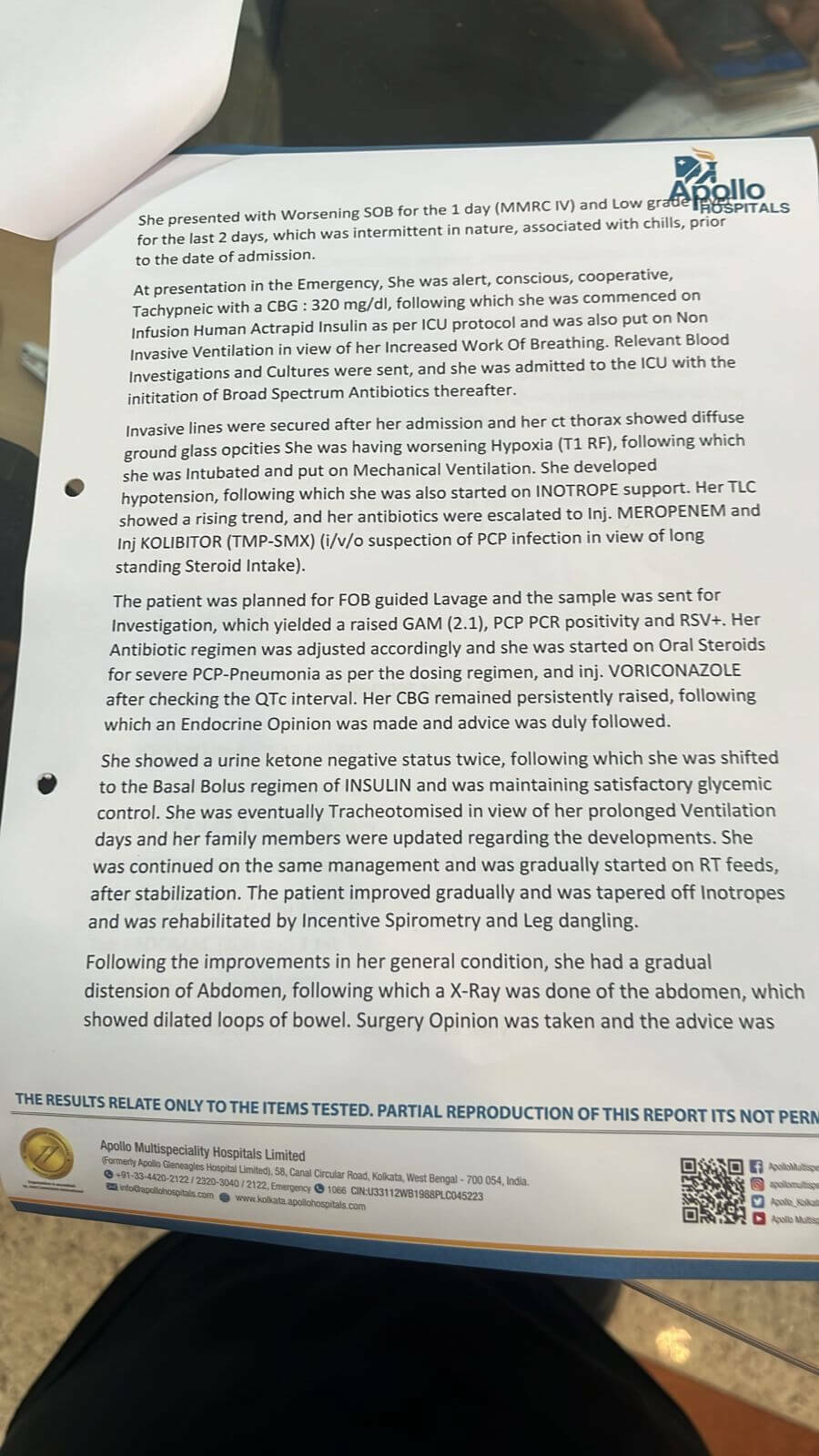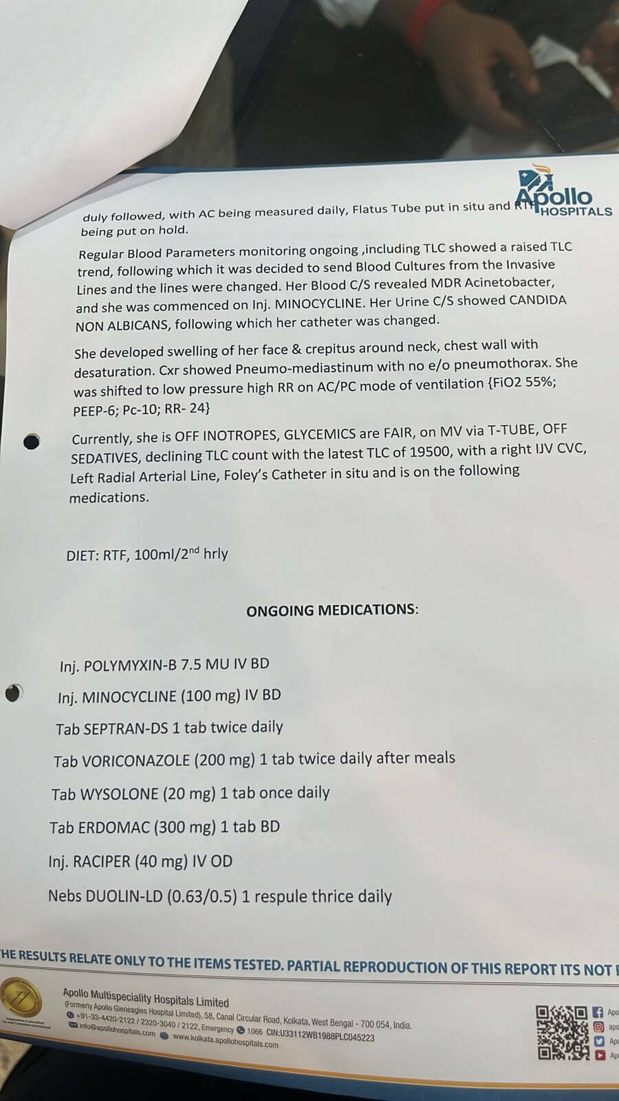 Let me take you into our small world, my name is Saptaparna, and my mother Jayanti is 54 years old. She’s lying in ICU now at Apollo Multispeciality Hospitals, Kolkata, connected to a ventilator that does the breathing her lungs can’t do by themselves. Over 30 days feels like a hundred lifetimes when you count every struggle, every beep of a hospital machine.