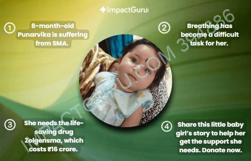 To recover, my little baby girl, Punarvika, urgently needs Zolgensma, a life-saving, FDA (Food and Drug Administration)-approved drug from the USA that can cure SMA. But the cost of this treatment is unimaginable: ₹16 crores.