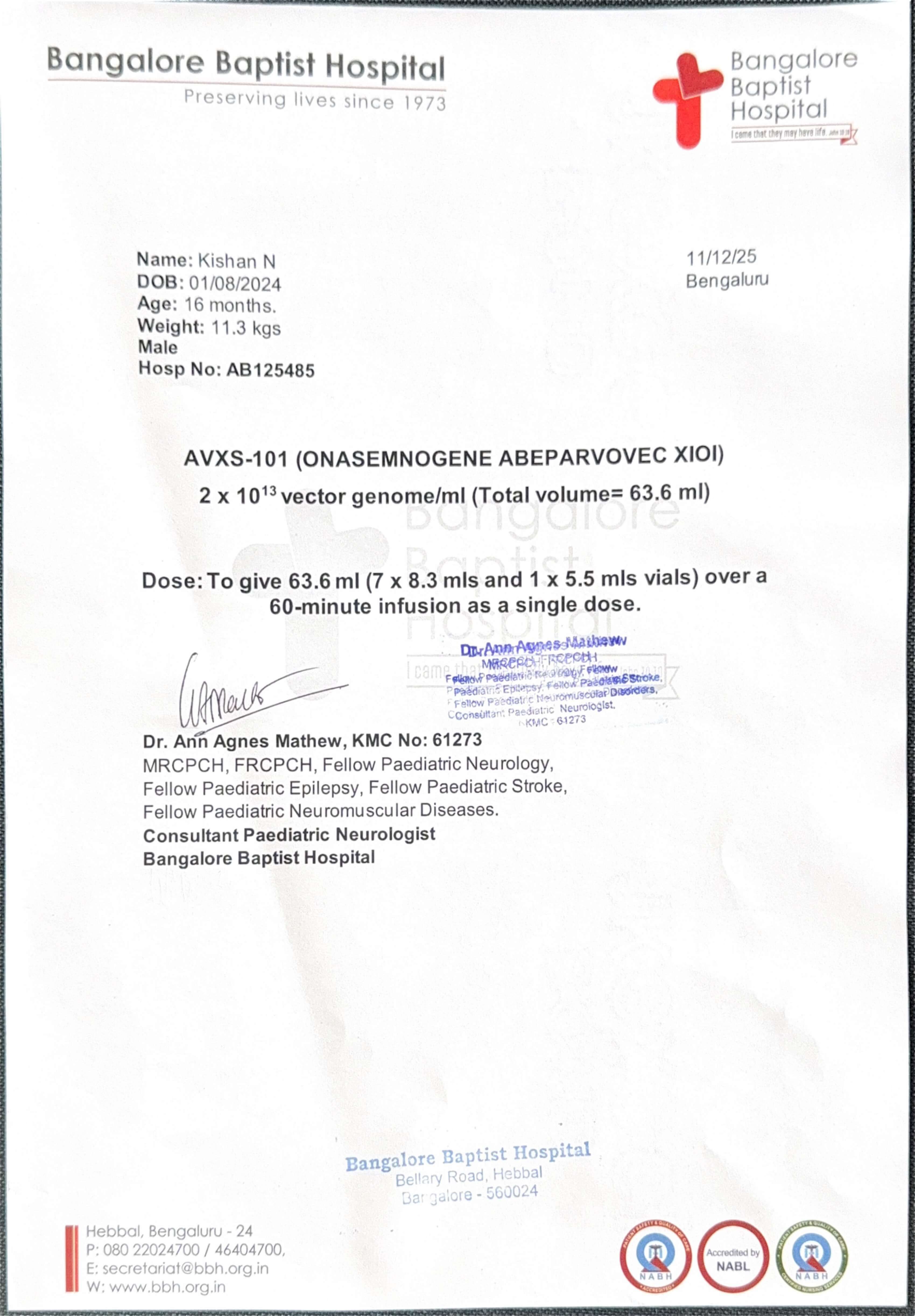 But our world changed forever when Kishan was diagnosed with Spinal Muscular Atrophy (SMA) Type 2—a rare, progressive, and life-threatening genetic disorder.