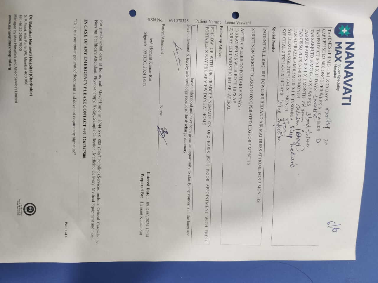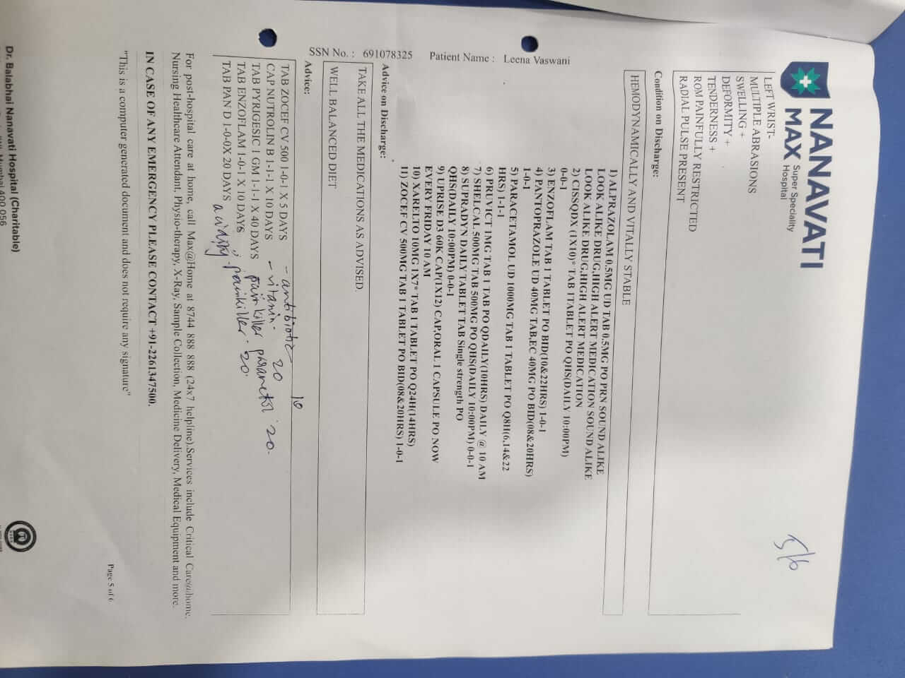 Currently: Leena needs extensive physiotherapy for 6 months due to the severe fractures and injuries she faces in her knee, pelvic bone and wrist. Recovery will take approximately 7 to 8 months but she is still unable to stand.