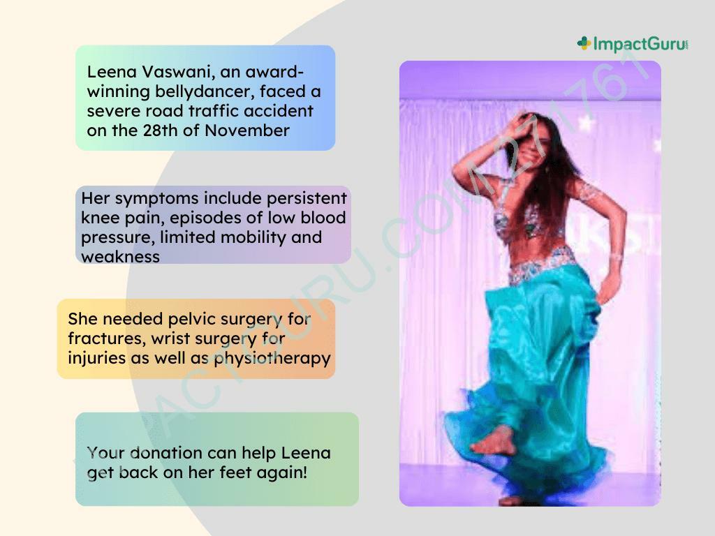 Leena’s life is dance, and dance is her life. Her performances have inspired aspiring dancers, brought communities together, and showcased the beauty of belly dance to the world. To see her sidelined by this tragedy is heartbreaking, but what remains unshaken is her determination.