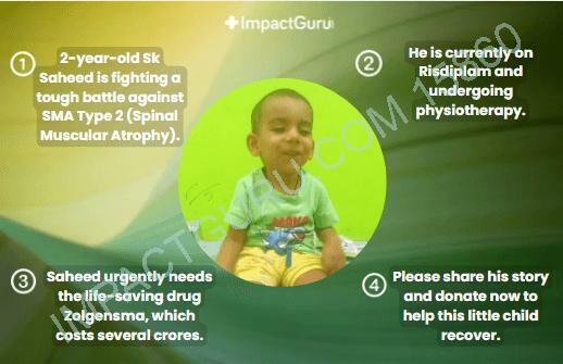 Saheed urgently needs a one-time, life-saving gene therapy called Zolgensma, approved by the US FDA. This revolutionary treatment replaces the faulty gene responsible for SMA and gives children a chance at a normal, healthier life.