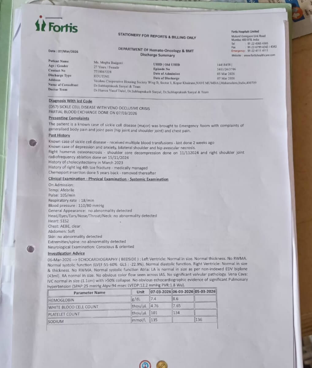 Help Megha Badgotri Fight Sickle Cell Anemia – Urgent Support Needed