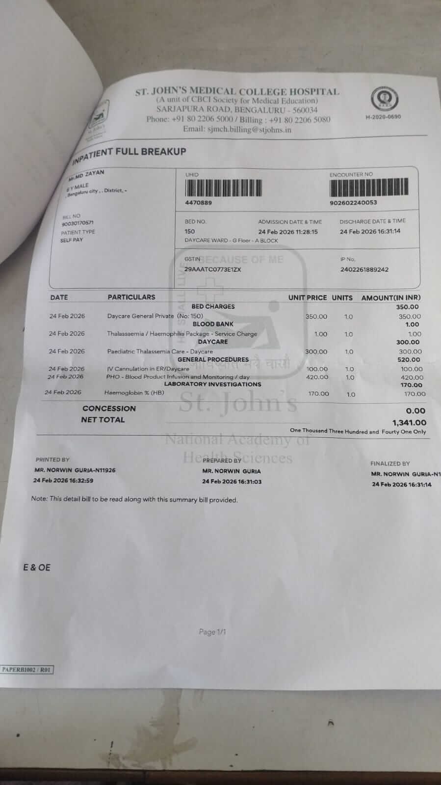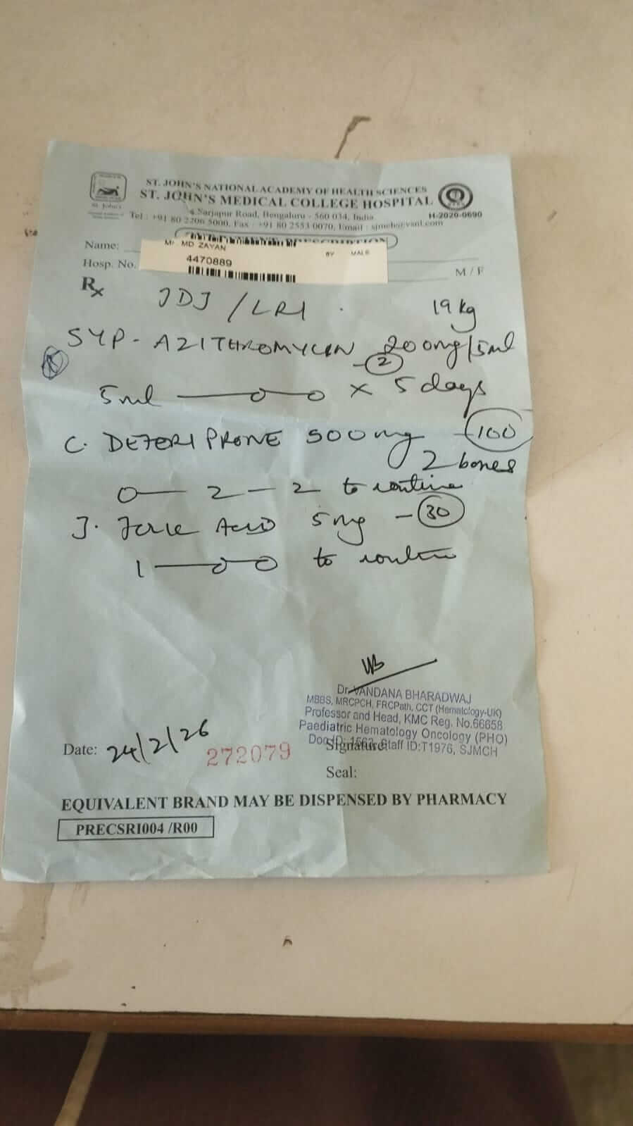 Zaya, my brave little boy, has been fighting a relentless condition that brings him immense pain from blood transfusions. His only hope for a healthier future is a bone marrow transplant, but the cost runs into lakhs.
