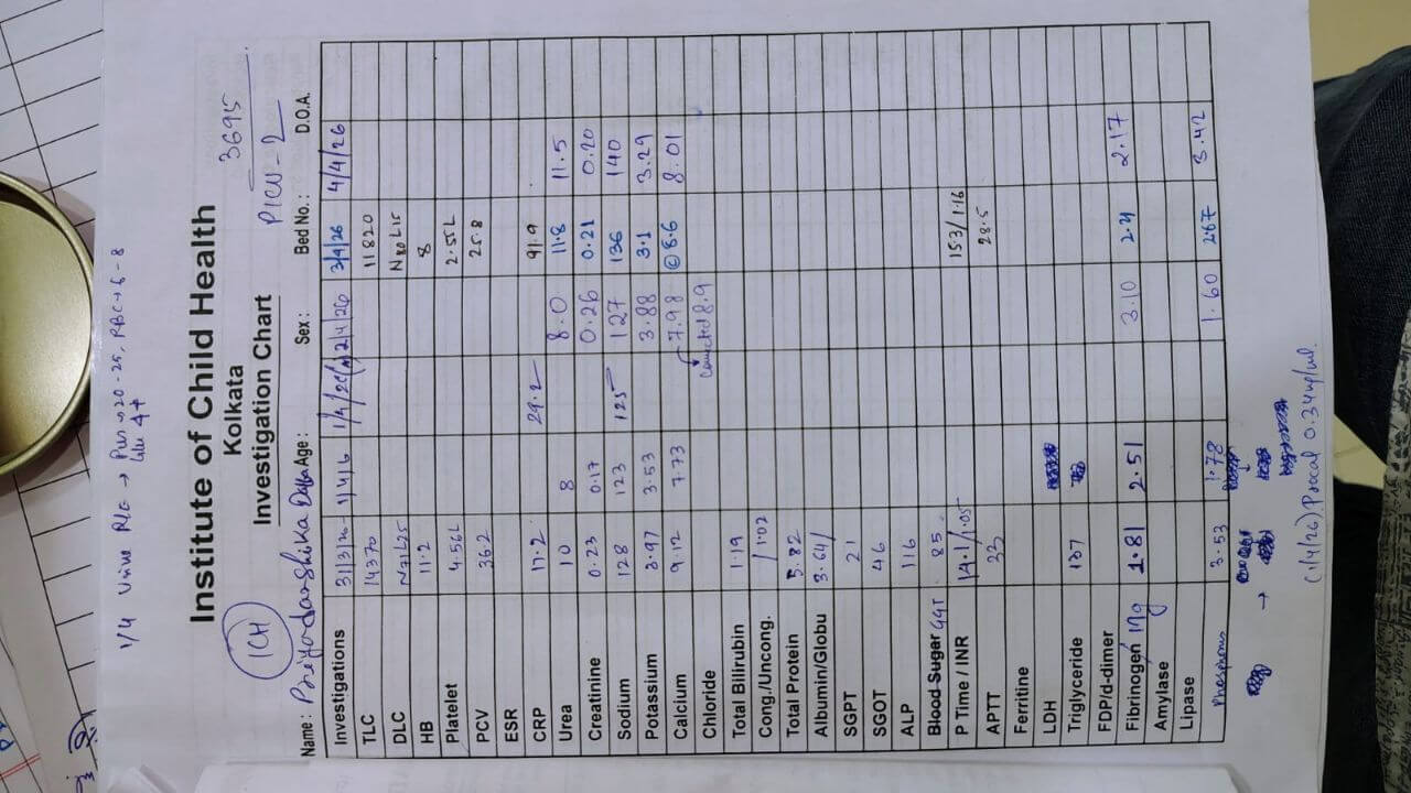 আমার নাম শান্তনু দত্ত, এবং আমি ভারাক্রান্ত হৃদয়ে আমার প্রিয় কন্যা প্রিয়দর্শিকা দত্ত-এর জন্য আপনাদের কাছে সাহায্যের আবেদন জানাচ্ছি। সে বর্তমানে Esophageal Stricture, Peritonitis, Respiratory Distress এবং Aspiration Pneumonia-র মতো একাধিক গুরুতর রোগের সঙ্গে লড়াই করছে। সে Institute of Child Health, Kolkata-তে গুরুতর চিকিৎসাধীন, যেখানে ডাক্তাররা তার জীবন বাঁচাতে জরুরি অপারেশন এবং নিয়মিত ওষুধের পরামর্শ দিয়েছেন।
