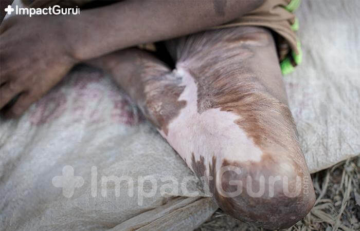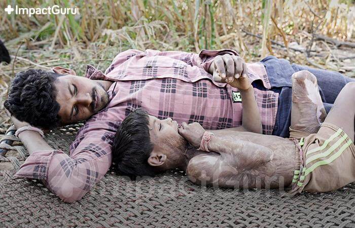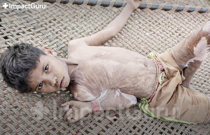 That day, my husband and I were at work. By the time we got back, Rajveer was already in unbearable pain. We rushed him to the hospital, but we didn’t have enough money for surgery. We have done everything we could—applying medicines, taking care of him day and night—but his wounds have not healed. His skin stretches and cracks with every movement. He can’t even sleep properly because of the pain.