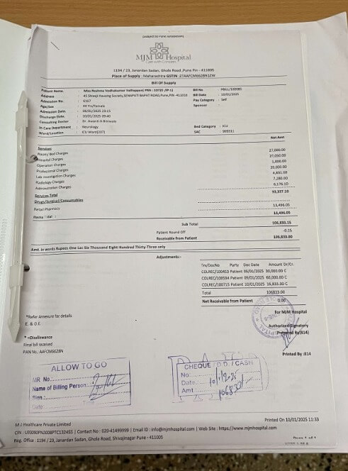 The estimated cost of this continued treatment is in lakhs, an overwhelming amount for her family, who has already spent multiple lakhs of money from savings, loans, and diluted fixed deposits.