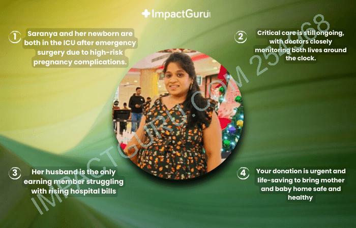 Saranya faced high-risk pregnancy complications and now, both my wife and my baby are fighting for their lives in the ICU.