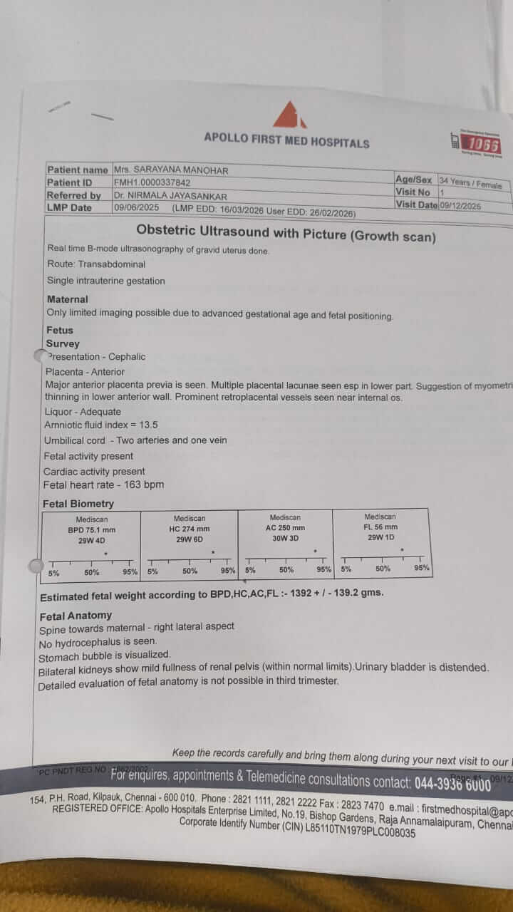 அவசர அறுவை சிகிச்சைக்குப் பிறகு சரண்யாவும் அவரது புதிதாகப் பிறந்த குழந்தையும் அதிக ஆபத்துள்ள கர்ப்ப சிக்கல்கள் காரணமாக ஐ.சி.யுவில் உள்ளனர்.