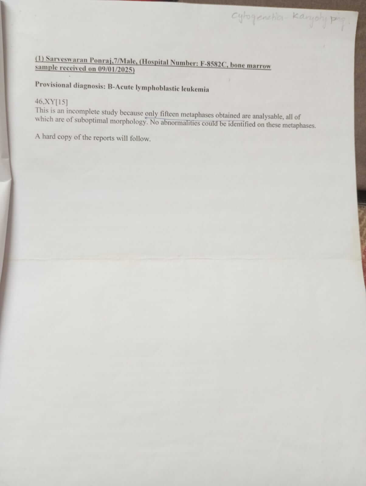 My name is Ponraj S, and I am reaching out with a heart full of hope and fear to seek support for my beloved son, Sarveswaran, who is bravely battling B-cell Acute Lymphoblastic Leukemia (ALL). I am raising funds to save my son’s life, as hearing that your child has cancer is every parent’s worst nightmare — and our family is living through that painful reality every single day.