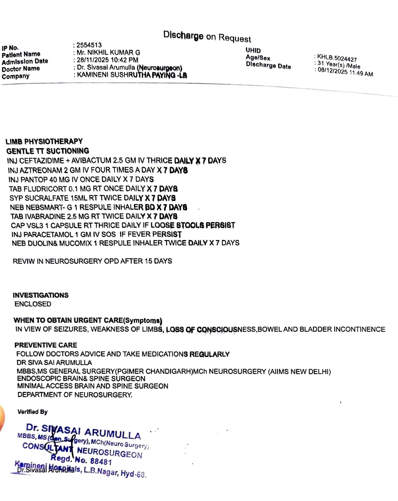 The ICU costs ₹50,000 per day, and the doctors say he needs prolonged intensive care.