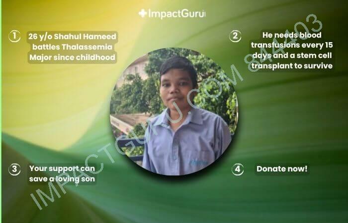 26 ఏళ్ల షాహుల్ హమీద్ చిన్నప్పటి నుంచి థలసేమియా మేజర్తో పోరాడుతున్నాడు