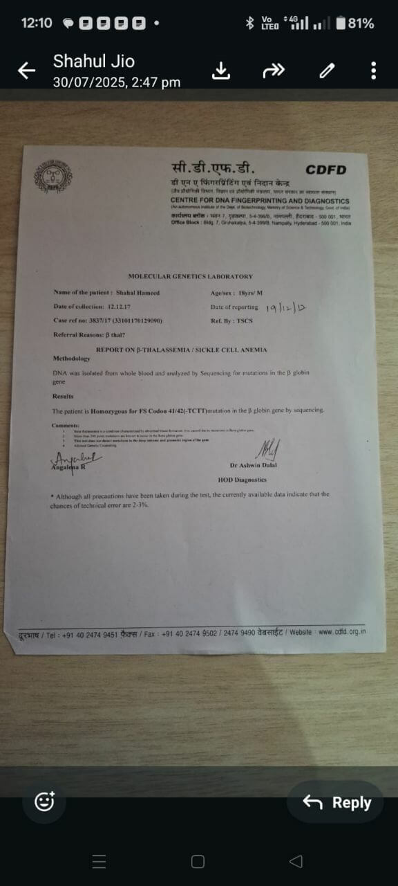 When he was just a little boy, I had dreamt that my son, Shahul Hameed, would be running around and laughing, enjoying his life but....My son, Shahul, had been diagnosed with thalassemia since his childhood. While other children ran and played, my son spent his days in hospitals while needles, transfusions, and silent pain became his reality.