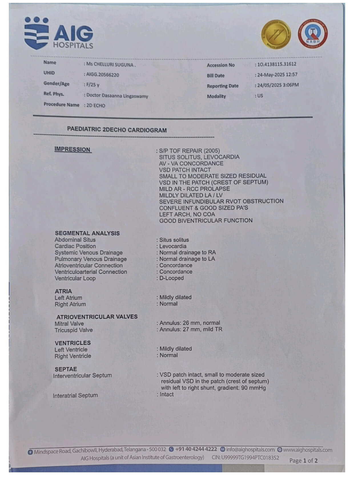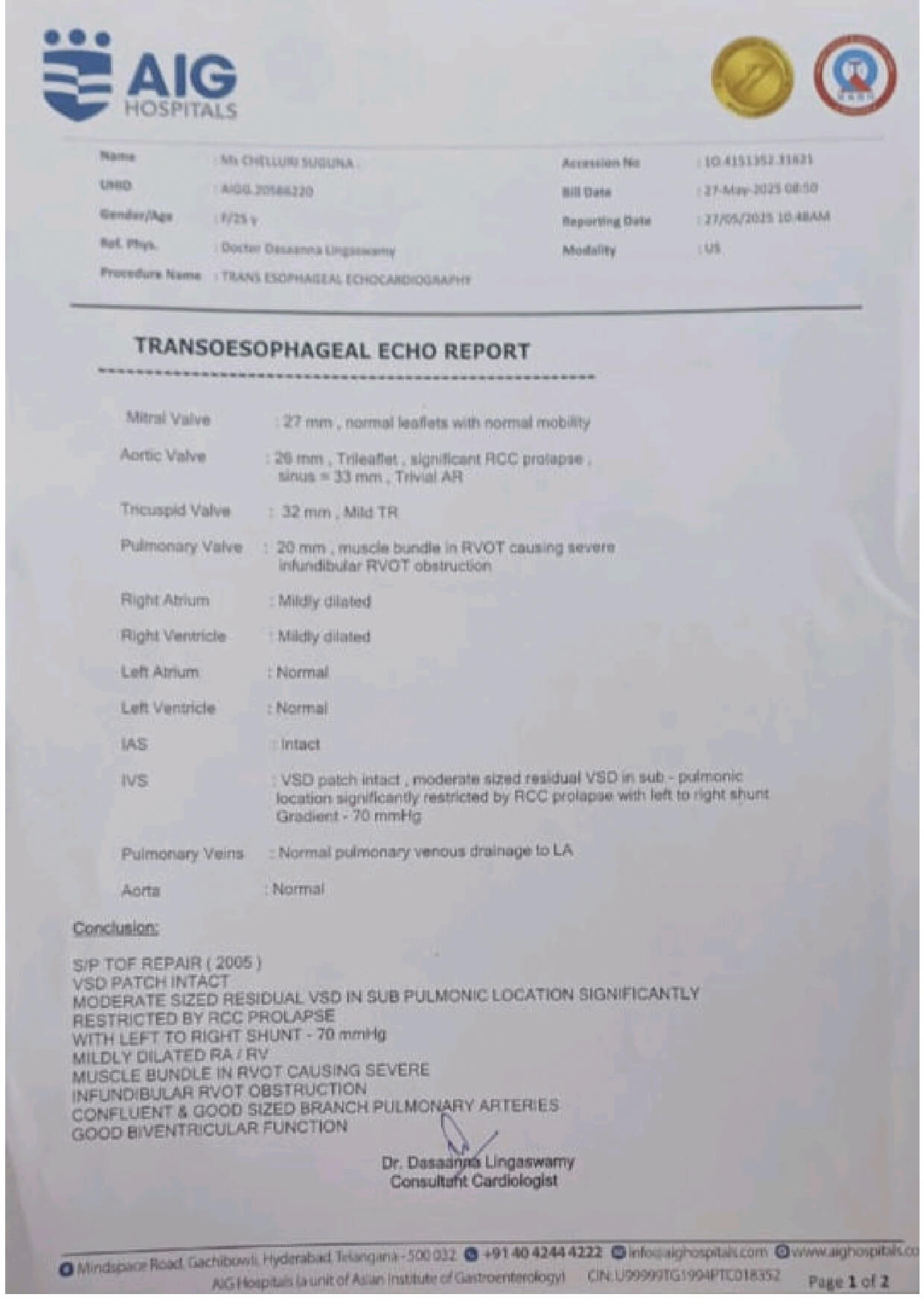 But now the oral medications are not showing any improvement in her condition. So the doctors of AIG Hospitals, Hyderabad, have made it clear that an open-heart surgery is the only option left for her survival.