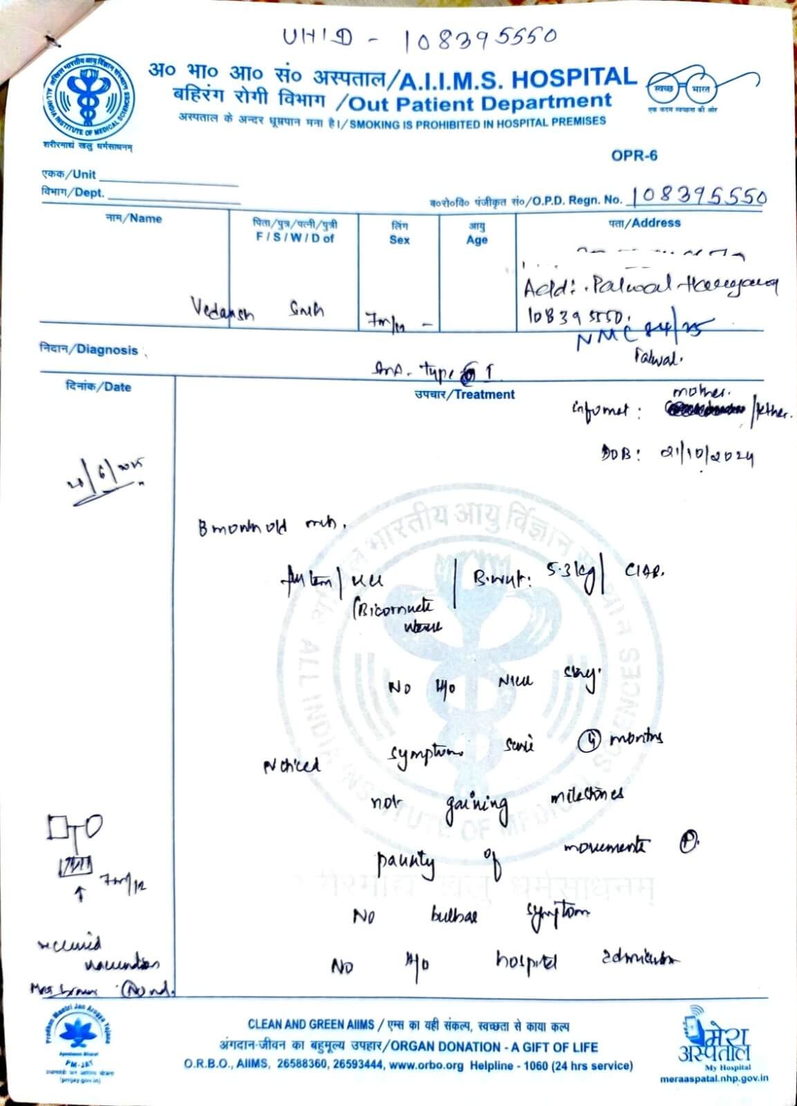Vedansh has been diagnosed with Spinal Muscular Atrophy (SMA) Type 1, a rare and devastating genetic disorder that affects every muscle in his tiny body, including the ones that help him breathe, swallow, and move. Every hour without treatment is a risk to his life. He’s already struggling. We’re watching our baby slowly lose the ability to even hold his head up… and there’s nothing more terrifying for a parent.