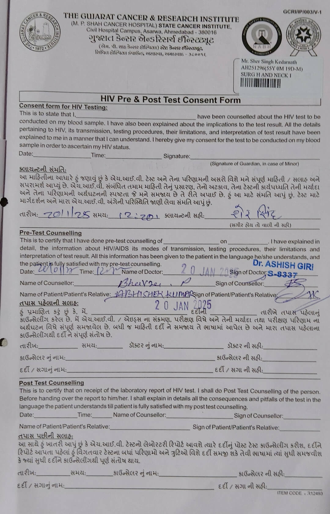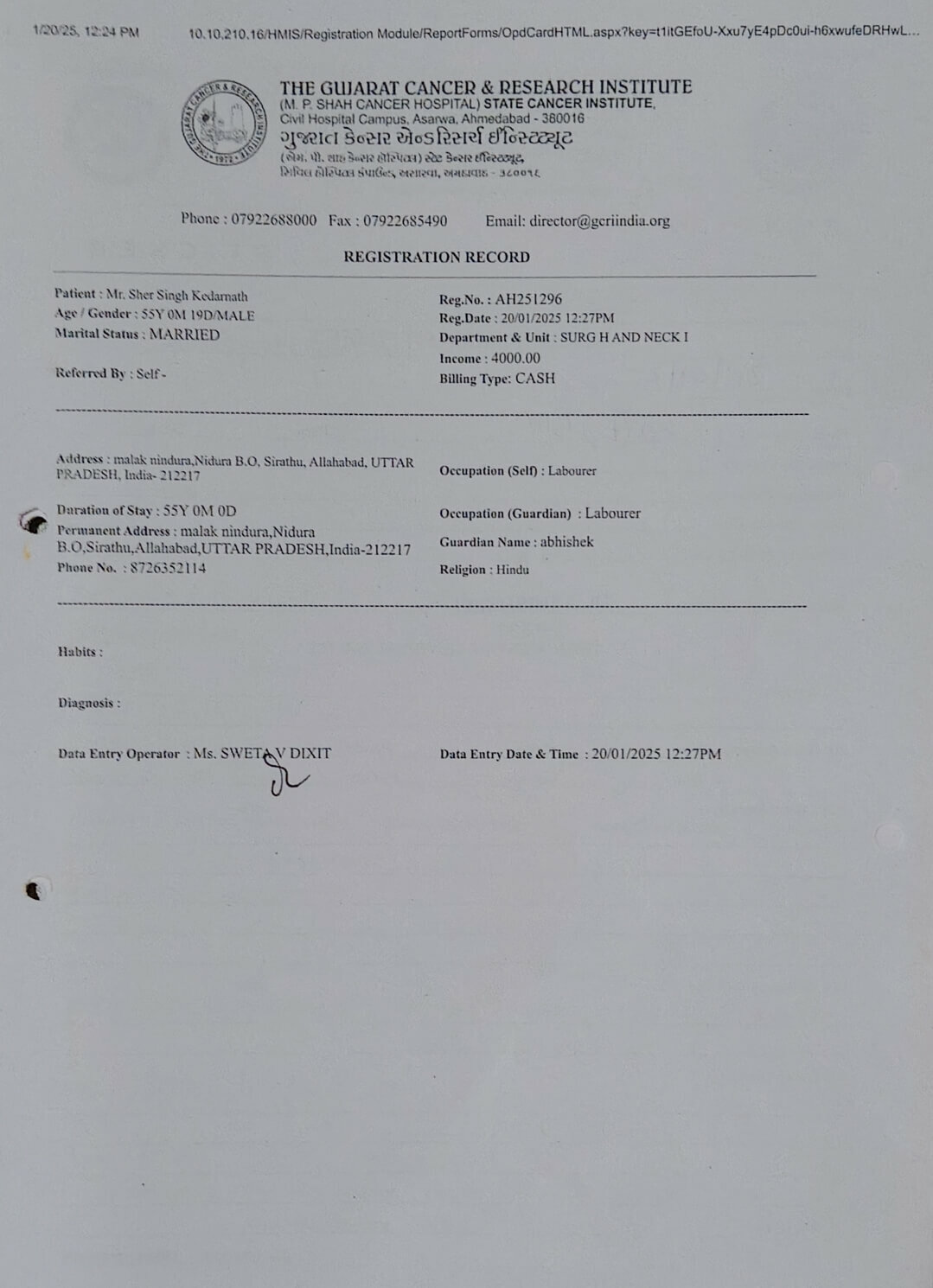 I am Abhishek Chauhan, and I am reaching out with a humble request to help save my father, Sher Singh. He has been diagnosed with Stage 4 Mouth Cancer, a devastating disease that has taken a toll on his health and our family’s emotional and financial well-being.