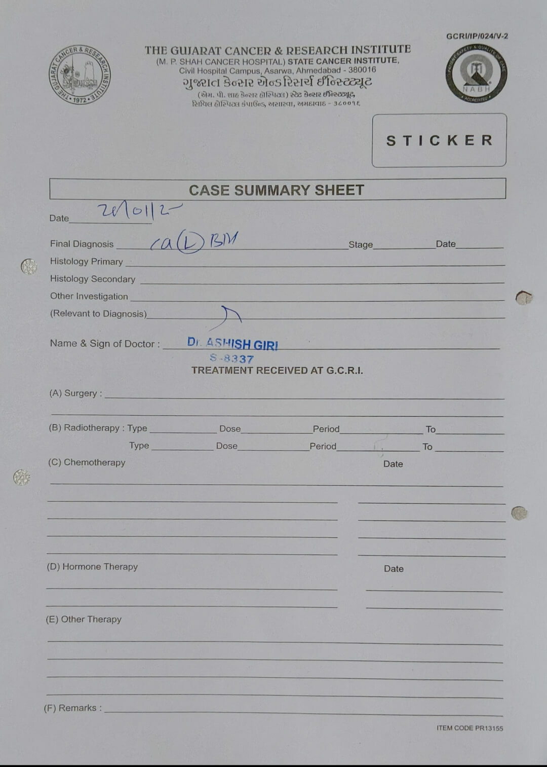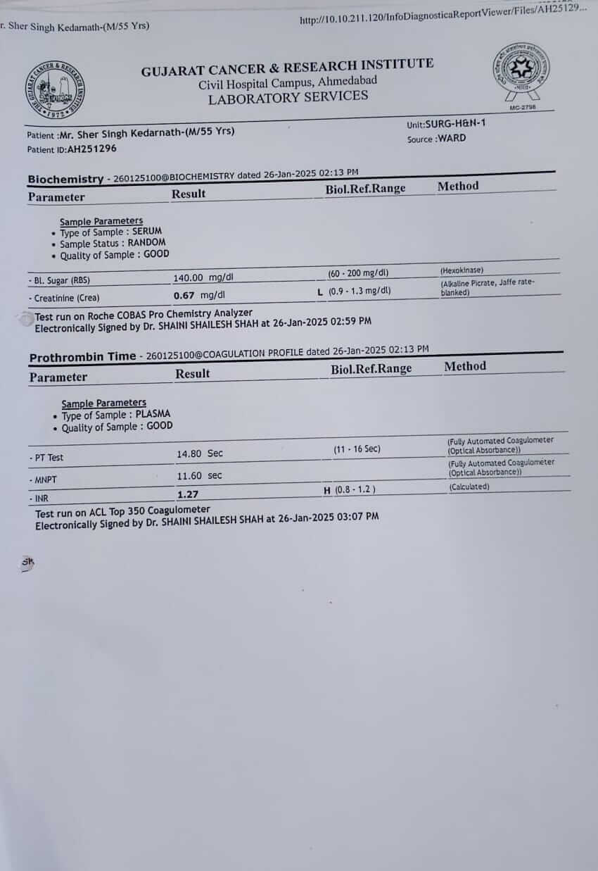 Doctors have advised urgent medical treatment, and he is currently undergoing care at Civil Cancer Hospital. Over the past few months, we have done everything possible to ensure he receives the best treatment. We have already spent Rs. 2,00,000, exhausting all our savings and taking loans. However, the total cost of the treatment is Rs. 7,00,000 more, which is beyond our financial capacity.